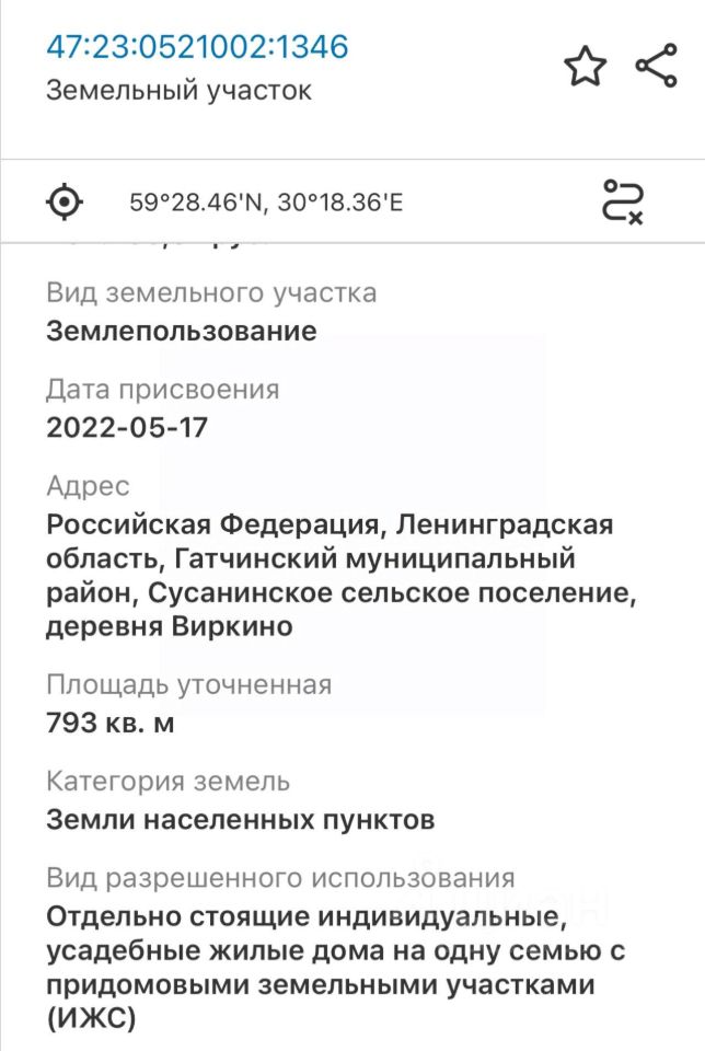Предлагаем в прямой продаже земельный участок площадью 793кв.м. в деревне Виркино, Гатчинский район.