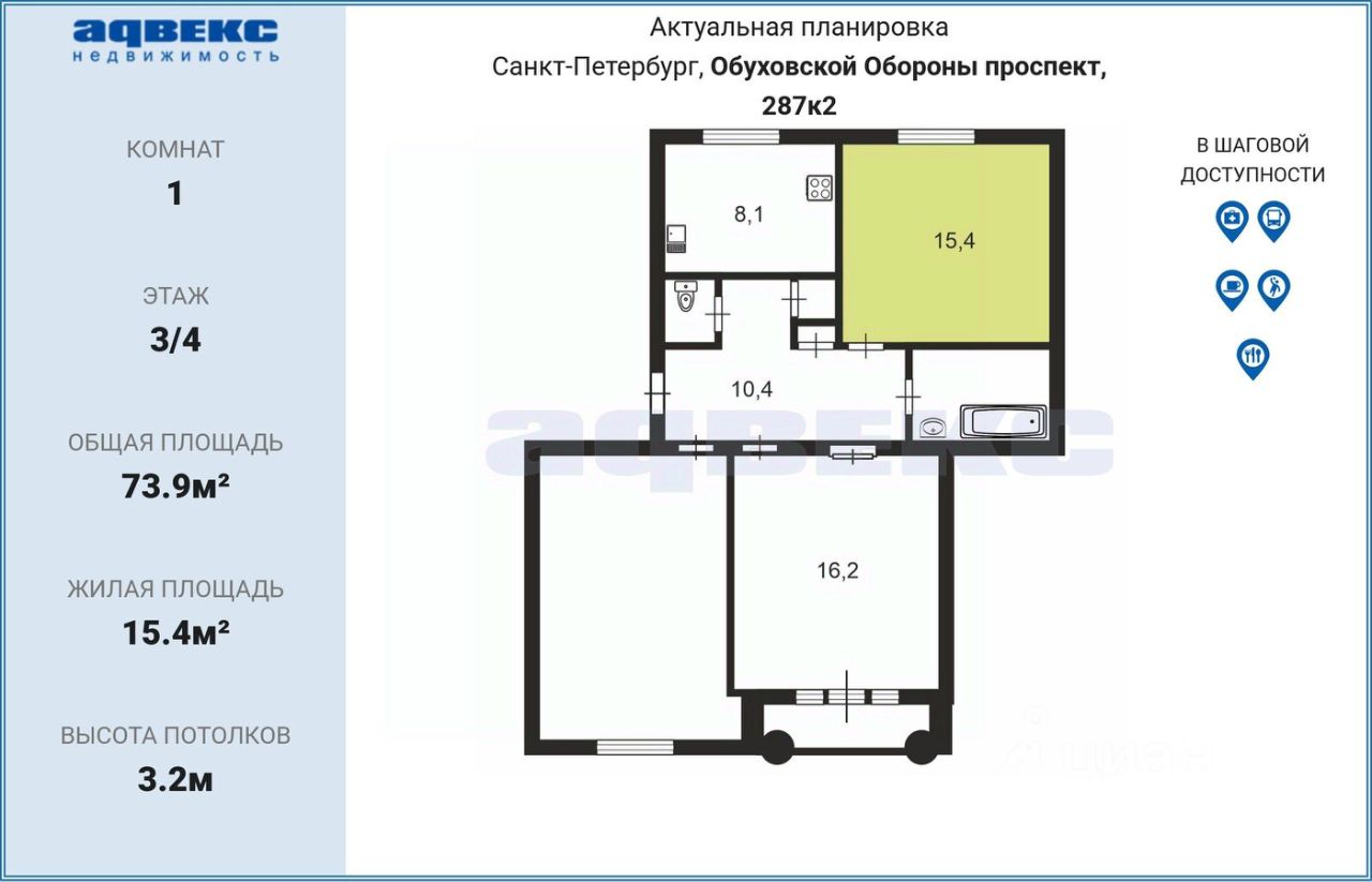 ID: 1787662 Продаётся просторная комната (15,4кв.м) в 3-х комнатной квартире, в кирпичном доме сталинской постройки. Комната светлая, теплая с видом на парк. Высокие потолки (3,20м). Также продается вторая комната (16.2кв.м) Дом расположен в замечательном парке, который был недавно отреставрирован, проложены пешеходные тропинки, установлены детские аттракционы, декоративные лавочки. Район с развитой инфраструктурой, в пешей доступности отделение банка, продуктовые магазины, аптеки, школа, детский сад. Удобная транспортная доступность, есть множество парковочных мест вокруг дома. Остановки общественного транспорта - в 3-х минутах пешком. До станций метро ''Пролетарская'' и ''Рыбацкая'' можно добраться за 7-10 минут.