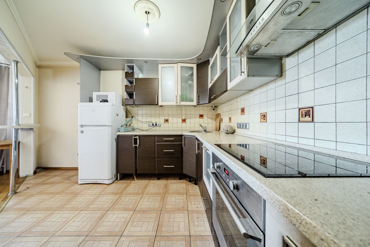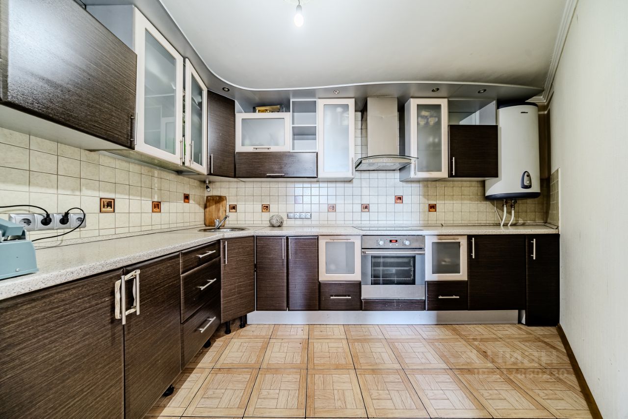 Основная гордость этой квартиры - большая кухня, оснащенная встроенной техникой. Здесь есть достаточно места не только для приготовления вкусных блюд, но и для создания уютной обеденной зоны, где можно собираться с семьей и друзьями за трапезой. Простор позволяет комфортно разместить все необходимые аксессуары и технику.