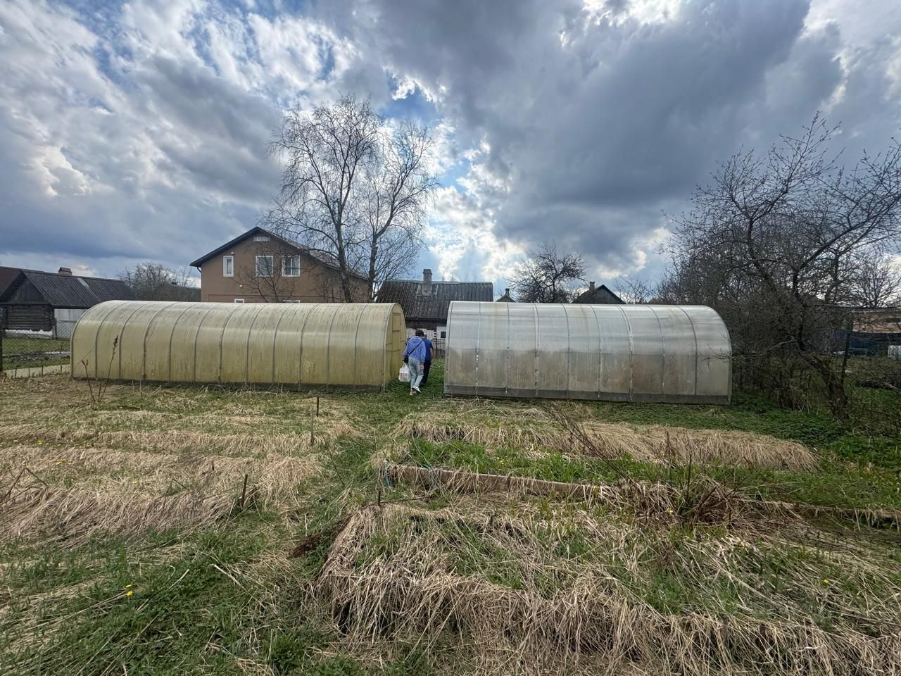 Дом одноэтажный, деревянный, облицованный кирпичом. Он жилой, но требует ремонта. На территории находятся две теплицы и надворные постройки, что станет отличным подспорьем для увлечений садоводством или дачной жизнью.