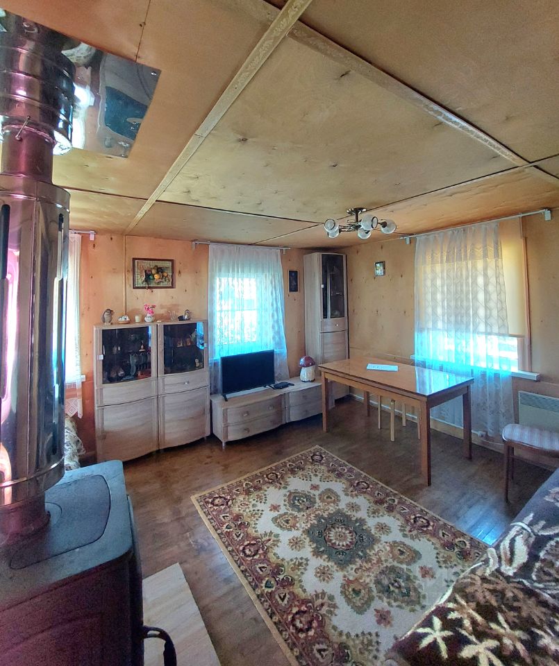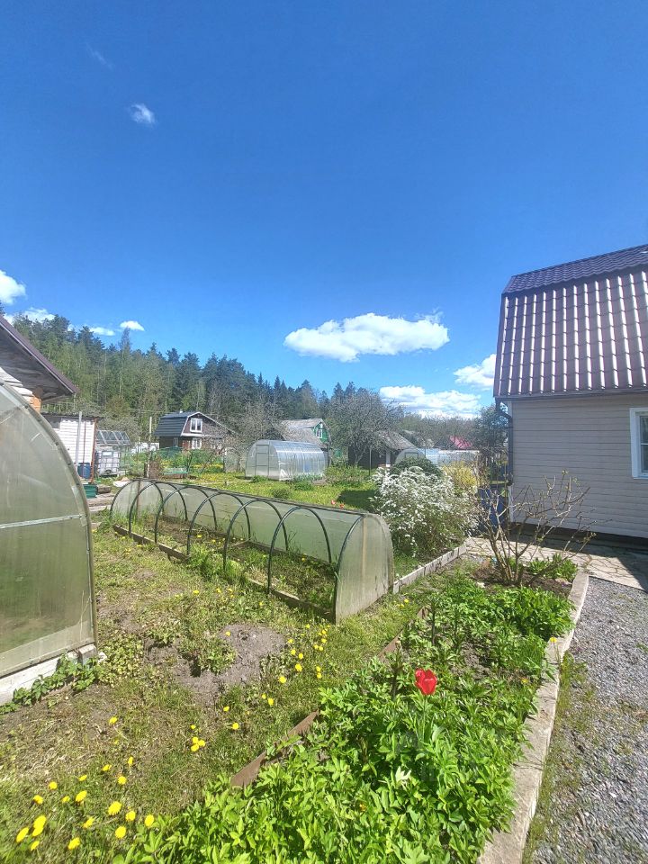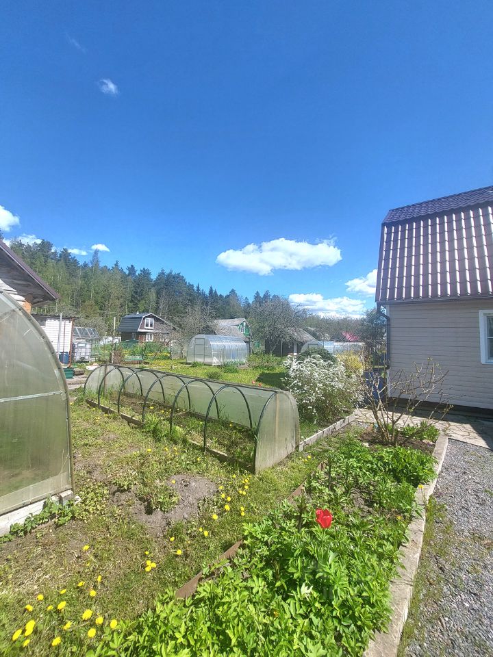 1-15, В СНТ Плёс 1, массив Рубеж продается участок 6,04 сотки, дом, баня, теплицы, хозпостройки. Всё в хорошем состоянии. Участок: разработан, 2 теплицы из поликарбоната На участке посажены плодовые деревья и кустарники (черная, красная, белая смородина, яблони, руша, жимолость). Участок огорожен забором. Дом: 2-х этажный, 80 м², 1- ый этаж бревно, 2-ой этаж и веранда каркасный. Дом зимний, утеплен обшит сайдингом, фундамент ленточный. 1-ый этаж: комната (гостиная) 26 м². Кухня 8 м², крыльцо (зашито). 2-ой этаж: комната 24 м², веранда, 2 кладовки. Все окна в доме стеклопакеты. Отопление печное + электрическое. Баня (2021 г.п.) бревенчатая на винтовых сваях. 3 помещения: парная, помывочная, предбанник. Участок и дом в собственности, межевание произведено. 1 собственник, без обременений. 15 минут пешком до остановки: автобусы ходят летом каждый час до г.Тосно. С Тосно электрички, автобусы до СПб.