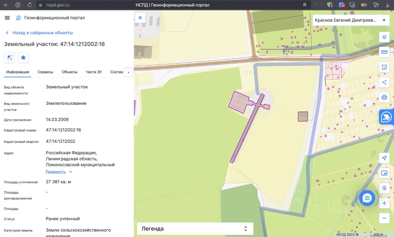 Категория по генплану промышленные земли. Кадастровый номер ЗУ: 47:14:1212002:16