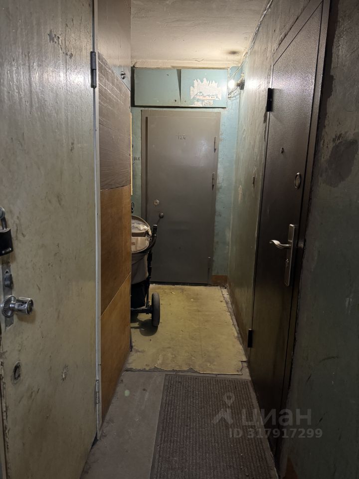 Комната напротив принадлежит пожилой женщине (не живёт), во второй комнате (муниципальная) прописана семья, стоящая на очереди.