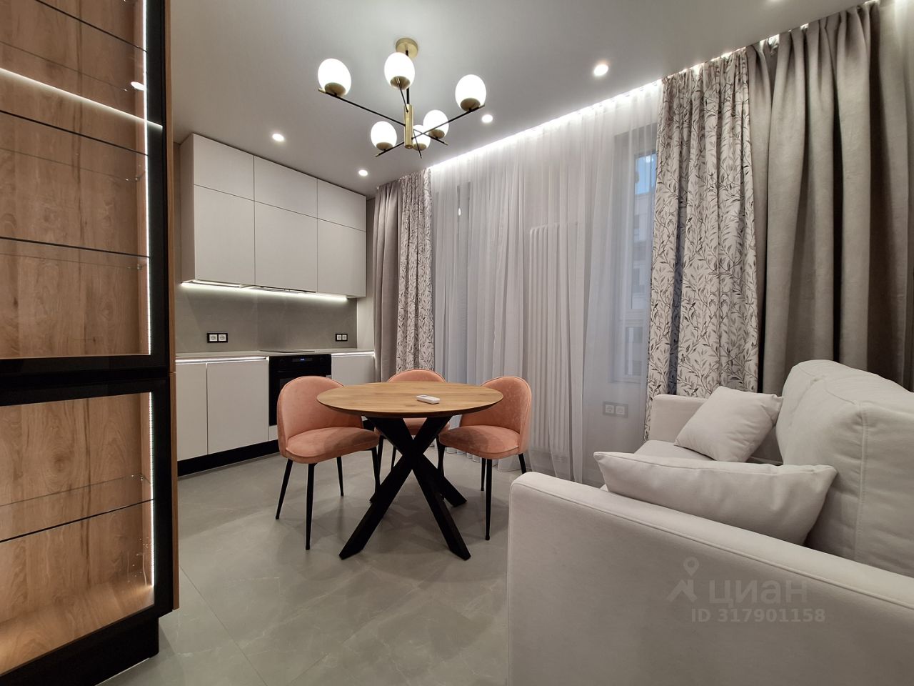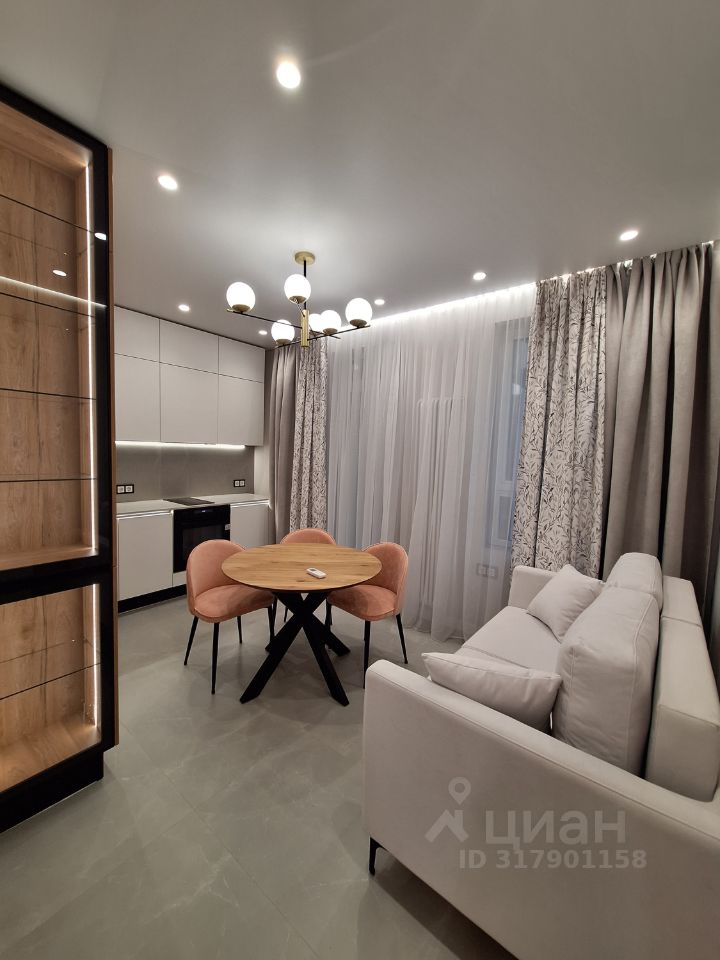 Столешница кварцевый агломерат. Диван выдвижной на кухне. Квартира оборудована системой кондиционирования (в комнате и на кухне)Полы с подогревом. Приточно-вытяжная вентиляция.