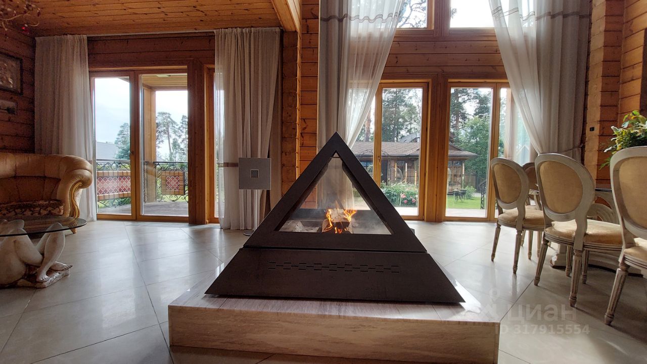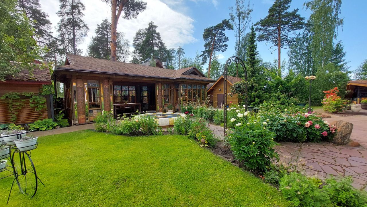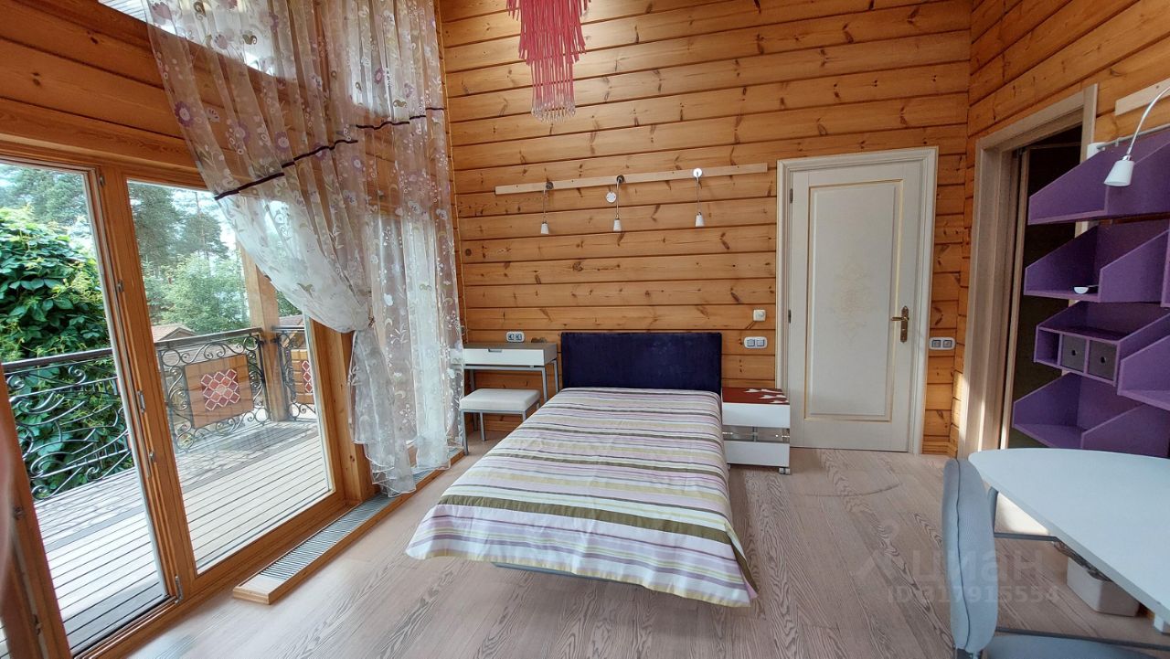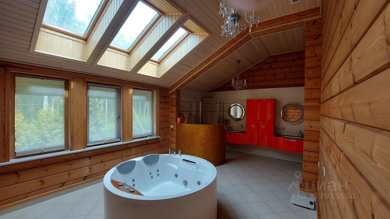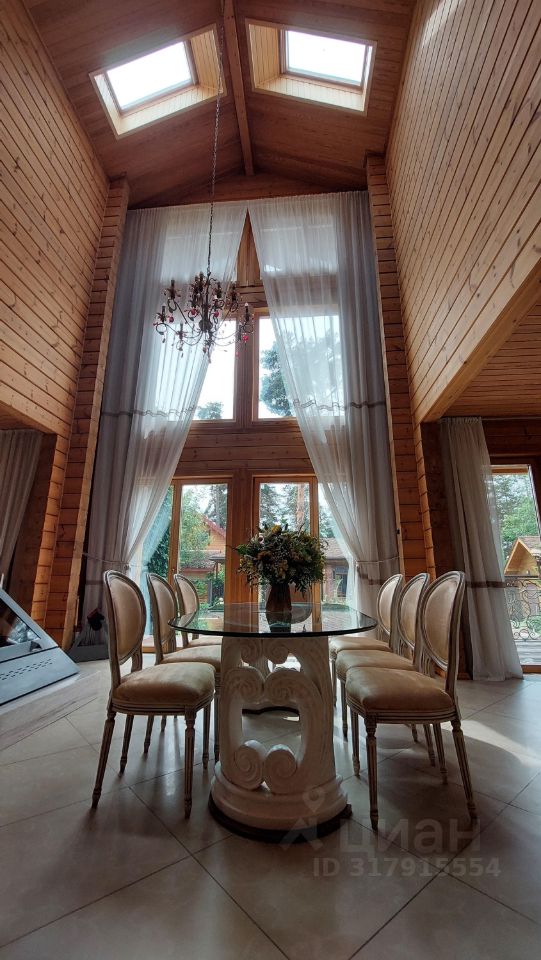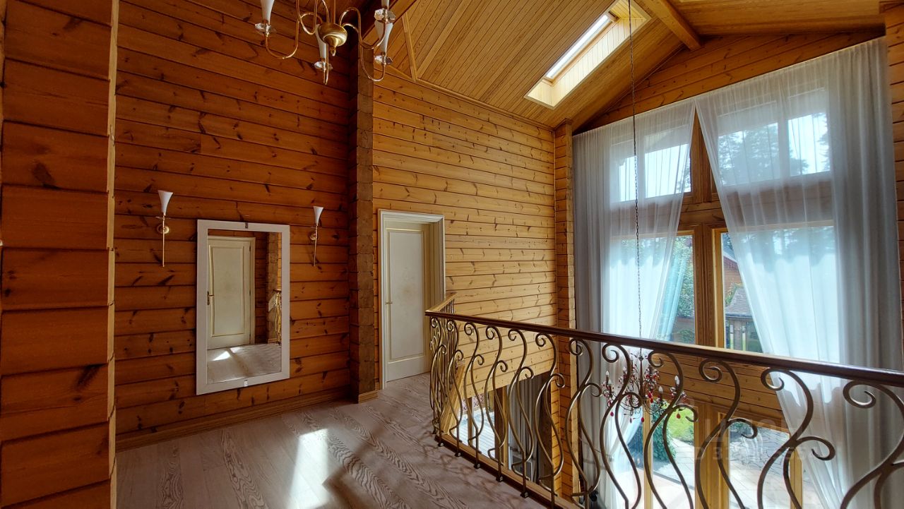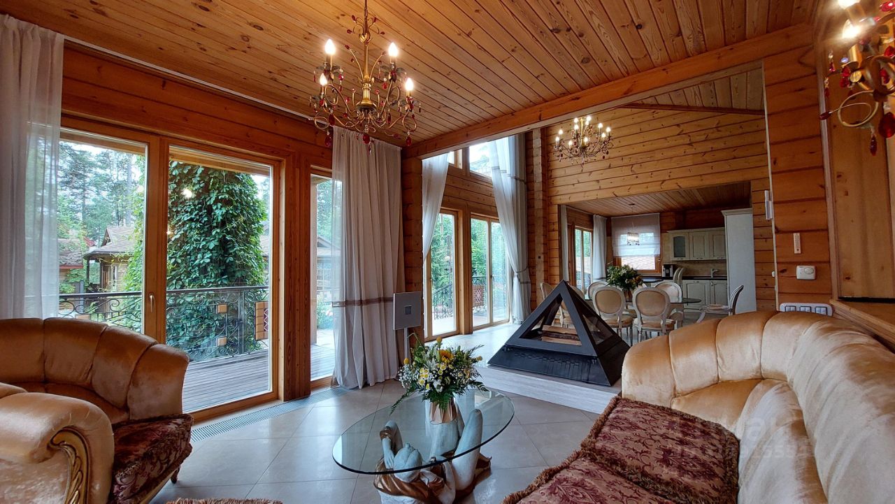 Дом двухэтажный отличного качества из клеенного бруса финского производства построен 10 лет назад. Толщина наружных и внутренних стен 20 см. Окна и двери из массива древесины со стеклопакетами. Фундамент - монолитная плита. Кровля - финская мягкая '' Тигула''. Планировка дома и отделка выполнены по индивидуальному дизайн-проекту высокого качества с применение дерева и керамики. На первом этаже дома расположены прихожая с гардеробом, санузел, огромное открытое пространство со вторым светом и двумя зонами: диванной зоной отдыха и кухней-столовой. В центре расположен стильный стеклянный камин-пирамида. Так же на первом этаже расположен спортивно - банный блок с тренажерным залом, сауной, хамамом, русской парной и купелью. На втором этаже две спальни с гардеробными комнатами и балконами и мастер-спальня с балконом. В центре этажа - ванная комната 24 м. кв. с джакузи. Дом полностью готов для проживания и продается со всей мебелью, техникой и пр.