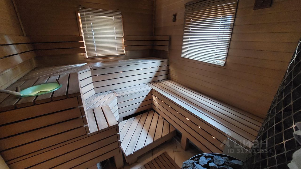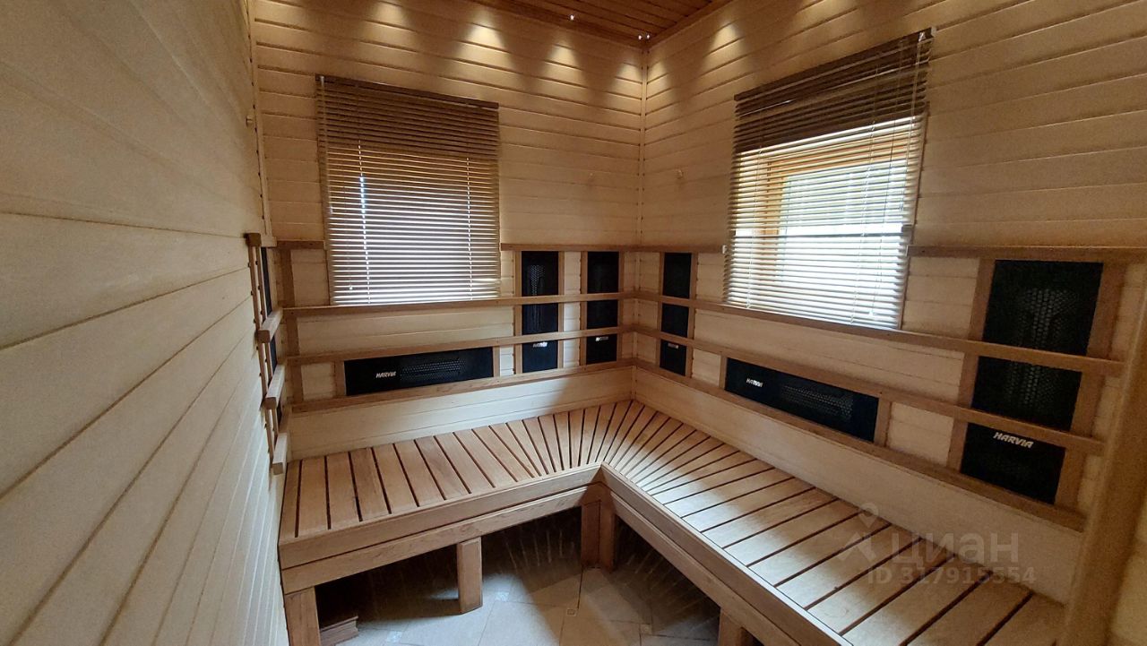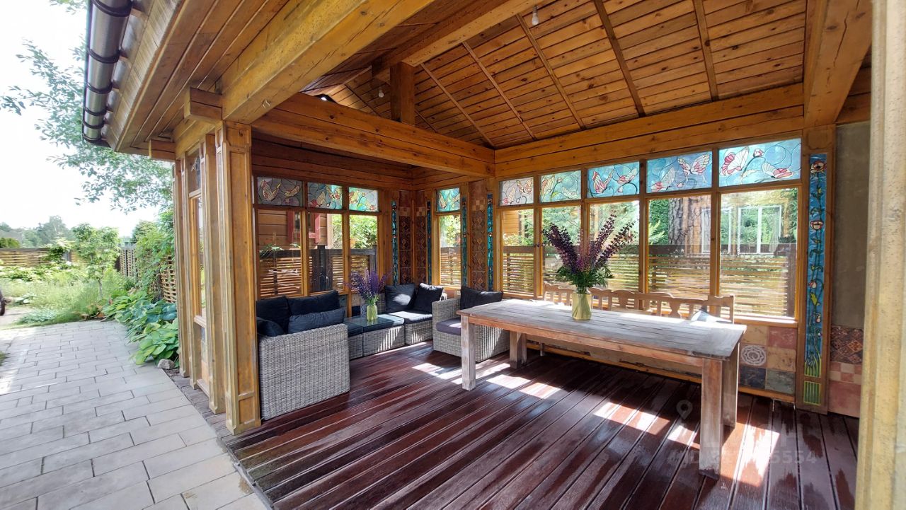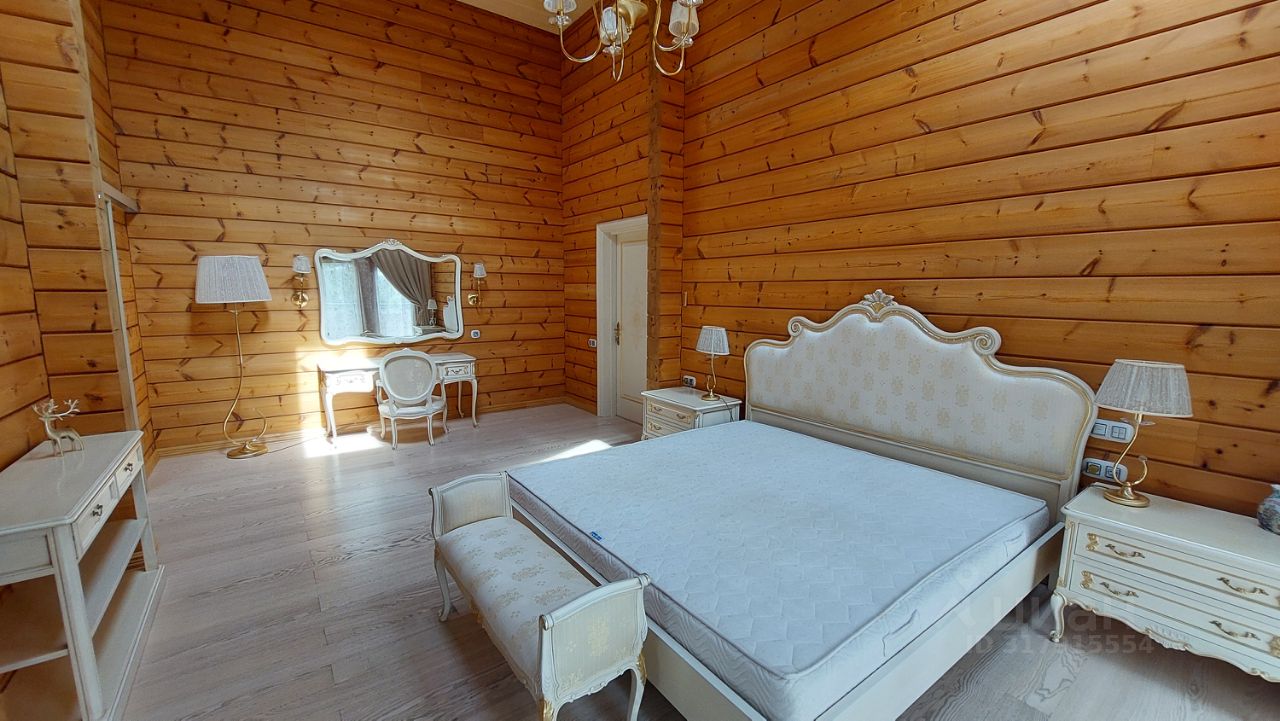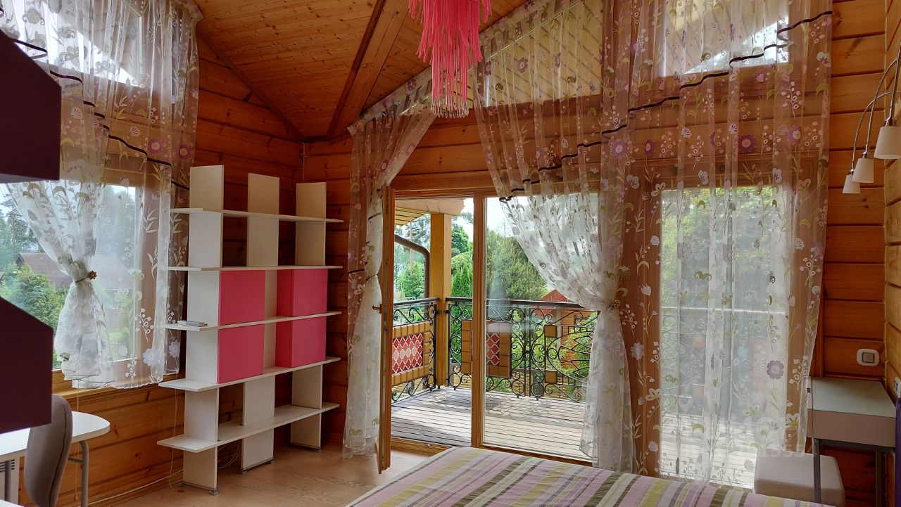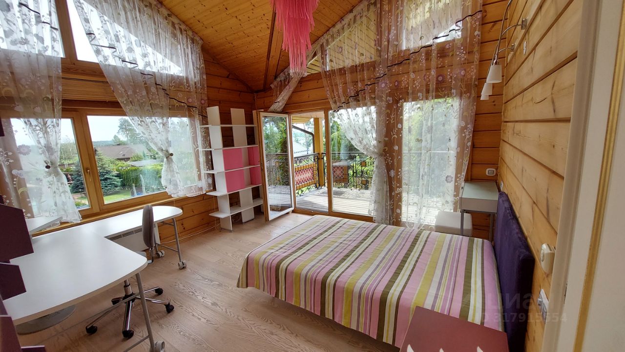 Дом двухэтажный отличного качества из клеенного бруса финского производства построен 10 лет назад. Толщина наружных и внутренних стен 20 см. Окна и двери из массива древесины со стеклопакетами. Фундамент - монолитная плита. Кровля - финская мягкая '' Тигула''. Планировка дома и отделка выполнены по индивидуальному дизайн-проекту высокого качества с применение дерева и керамики. На первом этаже дома расположены прихожая с гардеробом, санузел, огромное открытое пространство со вторым светом и двумя зонами: диванной зоной отдыха и кухней-столовой. В центре расположен стильный стеклянный камин-пирамида. Так же на первом этаже расположен спортивно - банный блок с тренажерным залом, сауной, хамамом, русской парной и купелью. На втором этаже две спальни с гардеробными комнатами и балконами и мастер-спальня с балконом. В центре этажа - ванная комната 24 м. кв. с джакузи. Дом полностью готов для проживания и продается со всей мебелью, техникой и пр.