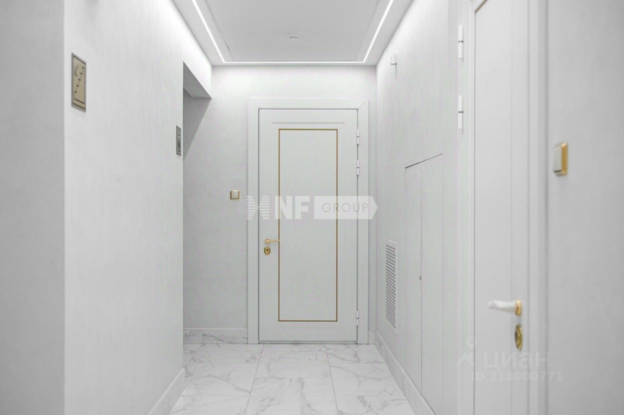 Отделка выполнена из премиальных материалов: натуральный паркет ''французская ёлка'', потолки — гипрок с точечной подсветкой. Установлена система кондиционирования во всех комнатах. Оснащение квартиры включает в себя встроенную технику Bosch, Samsung и Liebherr, а также дизайнерскую мебель европейских брендов.