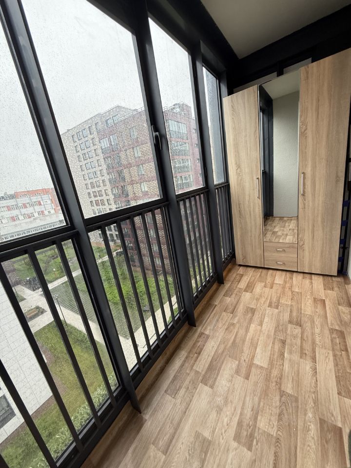 6 этаж. Совмещенный с/у(душ). Большой застекленный балкон. В квартире есть все необходимое: кровать , телевизор, много шкафов, стиральная машина, рабочее место, кухонный гарнитур, индукционная плита, микроволновка, духовка, посудомоечная машина, чайник, посуда.