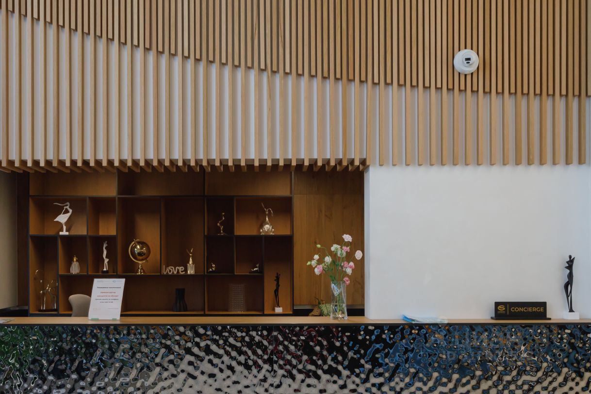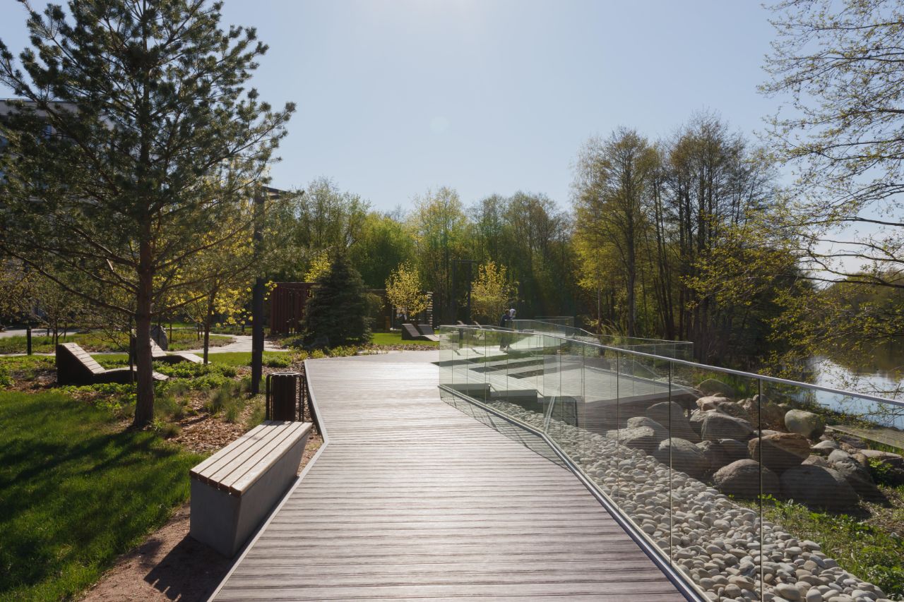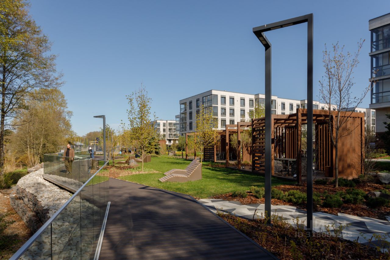 О жилом комплексе: •Закрытая охраняемая территория с видеонаблюдением •Центральное дизайнерское лобби с камином (250 м²) •Крытый бассейн, набережная и променад с арт-объектами •Подземный паркинг и кладовые с выходом на лифт •Помещения для хранения велосипедов и спортивного инвентаря •Новое общественное пространство с SPA-комплексом, банями, рестораном высокой кухни и прогулочной зоной с видом на парк