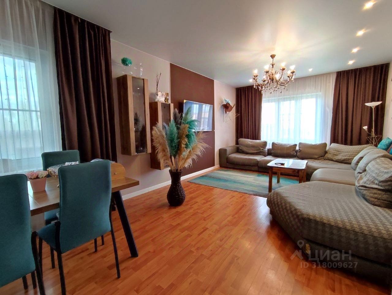 Просторная кухня-гостиная с балконом с панорамным остеклением и окном, при необходимости можно выделить комнату в отдельное помещение. В мастер-спальне балкон с панорамным остеклением, просторная прихожая, есть два отдельных помещения для организации системы хранения или гардеробной. В одной комнате организована большая гардеробная с системами хранения и зеркалом с пуфиком. При необходимости данную комнату можно использовать, как жилую комнату. В квартире остается вся мебель и бытовая техника. Заезжай и живи.