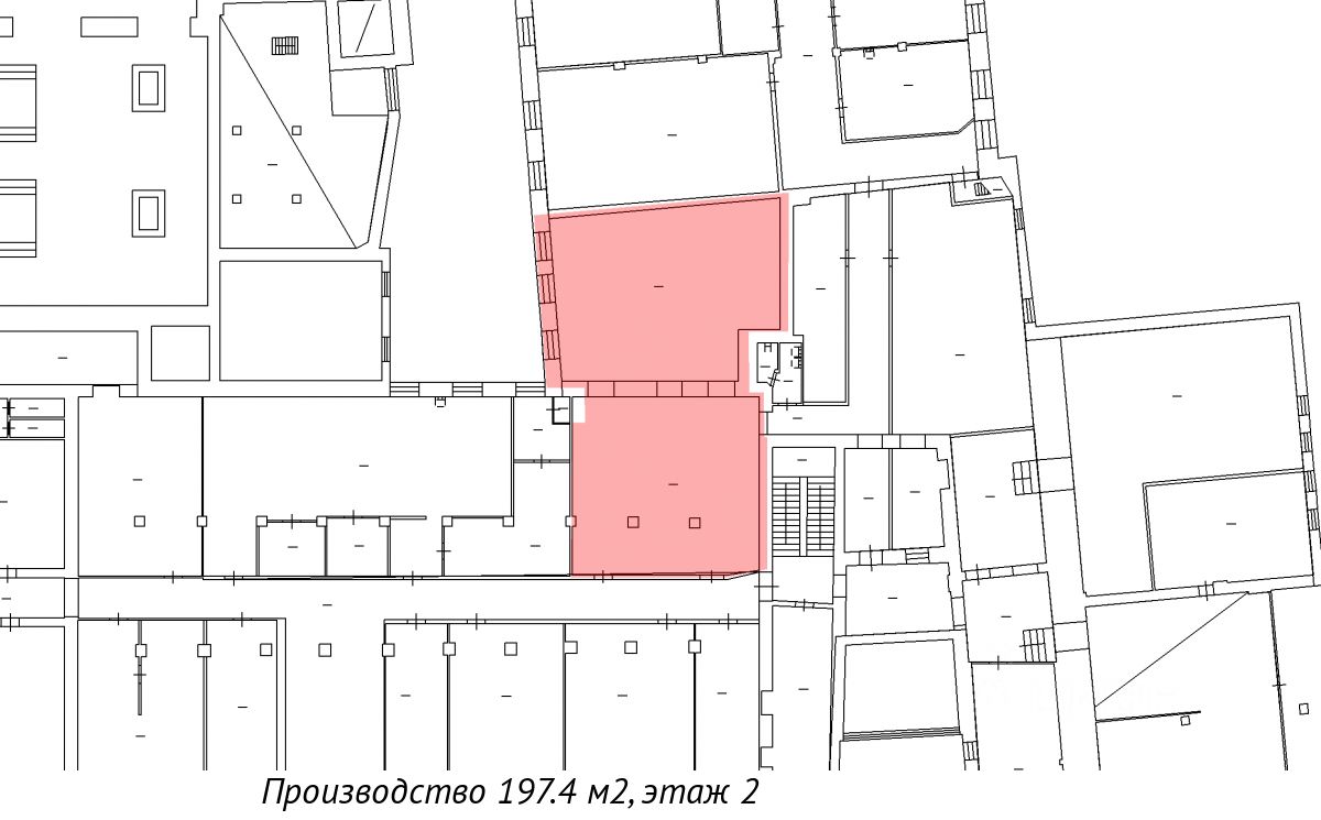 помещение под мастерскую. Помещение площадью 197.4 кв. м на 2-м этаже здания на Промышленной ул., д.5. На этаже работает грузовой лифт 2 т (2 х 2,2 х 2,5 м). Оснащение: отопление, освещение, выделенная электрическая мощность. Двое ворот (4 х 4 м, 2 х 3 м). В помещениях установлена пожарная сигнализация, проведены интернет и цифровая телефония. Ведётся круглосуточная охрана, есть парковка на территории. Ближайшая станция метро ''Нарвская'' находится в 5 минутах.