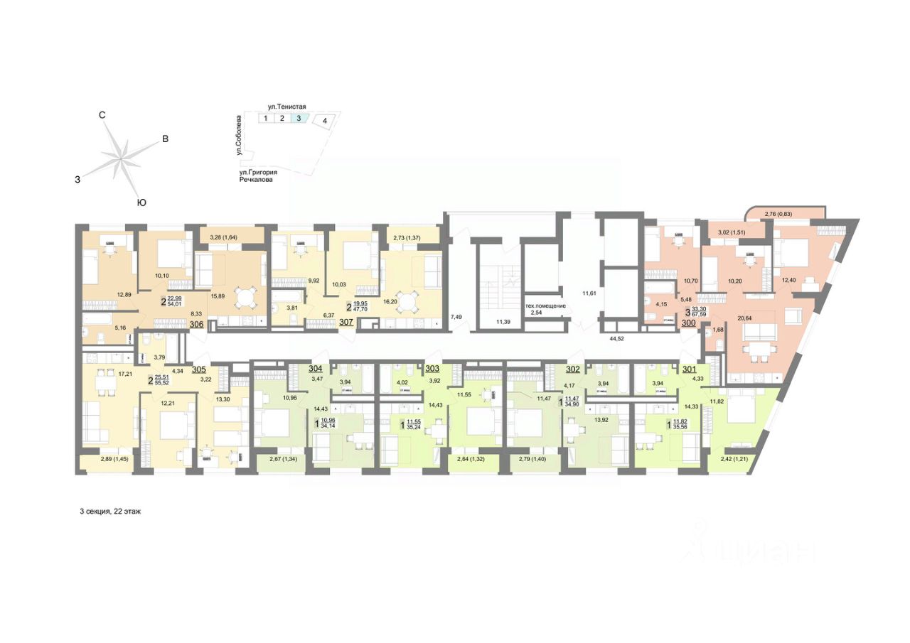 Семейный квартал ''На Тенистой'' будет состоять из 7 домов переменной этажности и паркинга. 1-я и 2-я очереди уже построены, сейчас активно возводится 3-я очередь и готовится к старту 4-ая очередь квартала. Квартал расположен на Широкой речке в самом молодом и современном районе - Академический, на пересечении улиц Тенистая-Краснолесья-Соболева. Вы сможете пользоваться преимуществами сразу нескольких районов: Широкая речка, Академический, Верх-Исетский и Юго-Западный! 30 минут до центра города на машине, 9 минут до Объездной дороги, если хочется выехать на природу. В шаговой доступности есть несколько школ, детских садов и спортивных секций. А еще один детский сад на 350 мест уже построен на территории самого квартала. Закрытый большой двор с ландшафтным дизайном Просторный двор, укрытый от городской суеты стенами домов, объединит все очереди жилого квартала ''На Тенистой''. К завершению строительства общая площадь двора составит впечатляющие 32 тыс. м², предоставляя достаточно места для отдыха и активности на любой вкус. Двор, разделят на рекреационные зоны по возрастам. Будут площадки для малышей и подростков с безопасным покрытием, зоны ворк-аута для предпочитающих здоровый образ жизни, прогулочные дорожки для бесед с друзьями или соседями. Живые зелёные изгороди, словно природная завеса, обеспечат чувство уединённости, защищая жителей первых этажей от посторонних взглядов. Уютный сад с плитняковыми тропинками, изящными перголами и удобными столиками для перекусов на свежем воздухе станет идеальным местом для тёплых семейных вечеров и дружеских встреч. Вдоль прогулочных дорожек установят невысокие уличные фонари, которые создадут атмосферу тепла и уюта. По всему периметру двора появится велодорожка, огибающая игровые зоны. Она станет любимым маршрутом для велосипедных прогулок. Игровые площадки покроют травмобезопасной резиновой крошкой нежных оттенков, подобранных специально для привлечения внимания детей. Разнообразие малых архитектурных форм порадует каждого ребёнка: карусели, качели-гнездышки, батуты, тарзанки и игровые комплексы обеспечат активный досуг и весёлое времяпровождение. Для начинающих футболистов разместится мини-футбольное поле с качественным искусственным газоном, расположенное таким образом, что шум и радость детских игр не потревожат ваш покой. Здесь ваши дети смогут организовывать настоящие турниры и приглашать друзей на матчи, наслаждаясь каждым моментом активного отдыха. Во дворе жилого комплекса ''На Тенистой'' каждый найдёт занятие по душе! Безопасность и комфорт Безопасность - важное преимущество эко-квартала. Вход на территорию осуществляется с помощью Face ID или через мобильное приложение. Для вашего удобства предусмотрено три выхода с подземного паркинга. На территории квартала будет круглосуточное видеонаблюдение, обеспечивающее безопасность вам и вашим маленьким исследователям в каждом уголке двора. В секции 1Г предусмотрено удобное помещение с водоматом, так что в любое время вы сможете пополнить запасы воды без лиш