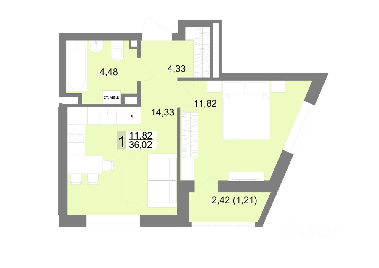 Общая площадь36,02 м2