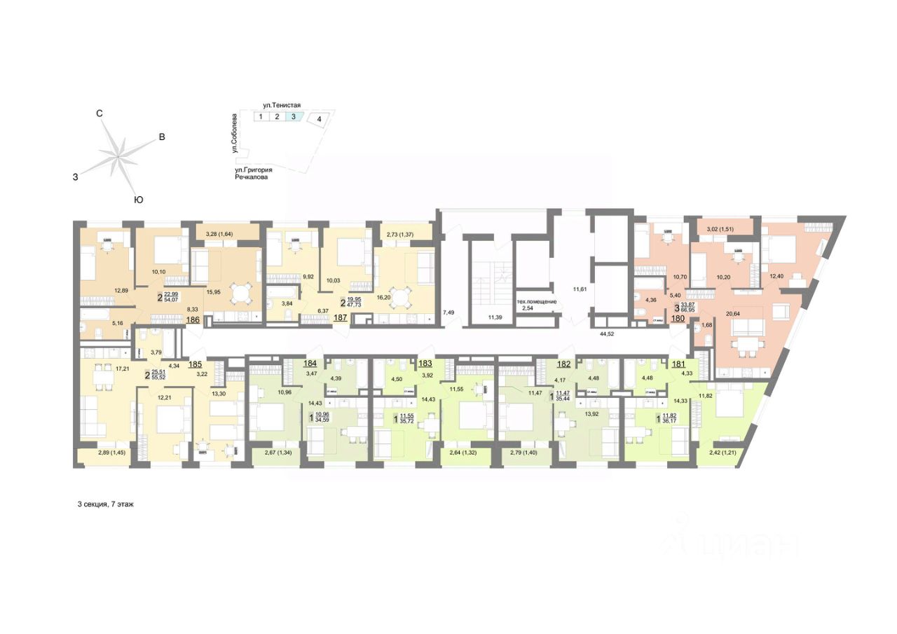 Семейный квартал ''На Тенистой'' будет состоять из 7 домов переменной этажности и паркинга. 1-я и 2-я очереди уже построены, сейчас активно возводится 3-я очередь и готовится к старту 4-ая очередь квартала. Квартал расположен на Широкой речке в самом молодом и современном районе - Академический, на пересечении улиц Тенистая-Краснолесья-Соболева. Вы сможете пользоваться преимуществами сразу нескольких районов: Широкая речка, Академический, Верх-Исетский и Юго-Западный! 30 минут до центра города на машине, 9 минут до Объездной дороги, если хочется выехать на природу. В шаговой доступности есть несколько школ, детских садов и спортивных секций. А еще один детский сад на 350 мест уже построен на территории самого квартала. Закрытый большой двор с ландшафтным дизайном Просторный двор, укрытый от городской суеты стенами домов, объединит все очереди жилого квартала ''На Тенистой''. К завершению строительства общая площадь двора составит впечатляющие 32 тыс. м², предоставляя достаточно места для отдыха и активности на любой вкус. Двор, разделят на рекреационные зоны по возрастам. Будут площадки для малышей и подростков с безопасным покрытием, зоны ворк-аута для предпочитающих здоровый образ жизни, прогулочные дорожки для бесед с друзьями или соседями. Живые зелёные изгороди, словно природная завеса, обеспечат чувство уединённости, защищая жителей первых этажей от посторонних взглядов. Уютный сад с плитняковыми тропинками, изящными перголами и удобными столиками для перекусов на свежем воздухе станет идеальным местом для тёплых семейных вечеров и дружеских встреч. Вдоль прогулочных дорожек установят невысокие уличные фонари, которые создадут атмосферу тепла и уюта. По всему периметру двора появится велодорожка, огибающая игровые зоны. Она станет любимым маршрутом для велосипедных прогулок. Игровые площадки покроют травмобезопасной резиновой крошкой нежных оттенков, подобранных специально для привлечения внимания детей. Разнообразие малых архитектурных форм порадует каждого ребёнка: карусели, качели-гнездышки, батуты, тарзанки и игровые комплексы обеспечат активный досуг и весёлое времяпровождение. Для начинающих футболистов разместится мини-футбольное поле с качественным искусственным газоном, расположенное таким образом, что шум и радость детских игр не потревожат ваш покой. Здесь ваши дети смогут организовывать настоящие турниры и приглашать друзей на матчи, наслаждаясь каждым моментом активного отдыха. Во дворе жилого комплекса ''На Тенистой'' каждый найдёт занятие по душе! Безопасность и комфорт Безопасность - важное преимущество эко-квартала. Вход на территорию осуществляется с помощью Face ID или через мобильное приложение. Для вашего удобства предусмотрено три выхода с подземного паркинга. На территории квартала будет круглосуточное видеонаблюдение, обеспечивающее безопасность вам и вашим маленьким исследователям в каждом уголке двора. В секции 1Г предусмотрено удобное помещение с водоматом, так что в любое время вы сможете пополнить запасы воды без лиш