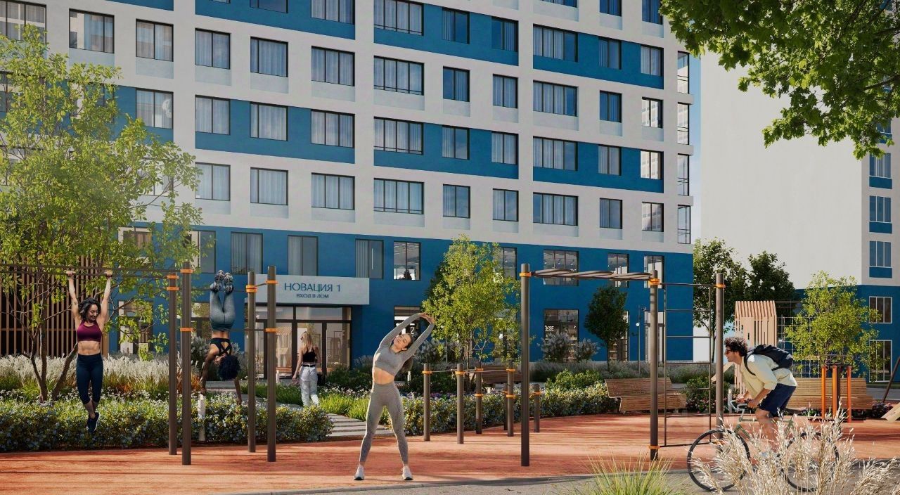 Жизнь в ЖК Новация это новый уровень безопасности. Круглосуточное видеонаблюдение будет по всей территории квартала. Закрытый двор без машин и интерактивные домофоны в подъездах обеспечат сохранение порядка, гармонии и безопасности в квартале Новация. ПО-НОВОМУ КОМФОРТНЕЕ Мы создали новый уровень комфорта для дворового пространства. В нашем дворе установлены современные детские площадки, разделенные по возрастным зонам, где ваш ребенок легко заведет новых друзей. Воркаут зона отлично подойдет для утренних тренировок, которые зарядят энергией на весь день. Все площадки оснащены специальным покрытием, которое защитит от ушибов. Для любителей экологичного транспорта предусмотрены велопарковки по всему кварталу. Пешие прогулки наполнятся особой атмосферой романтики благодаря разноуровневому освещению.
