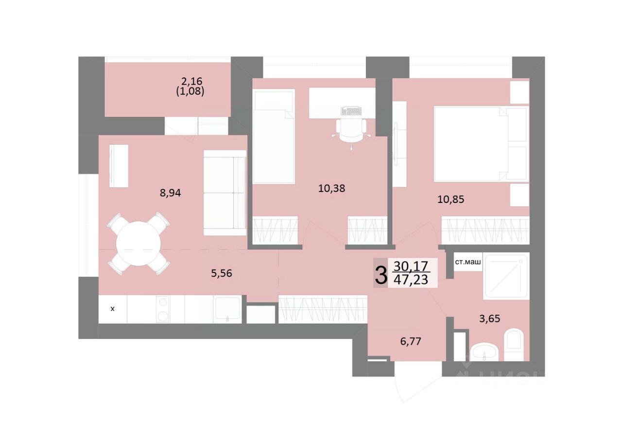 Общая площадь47,23 м2