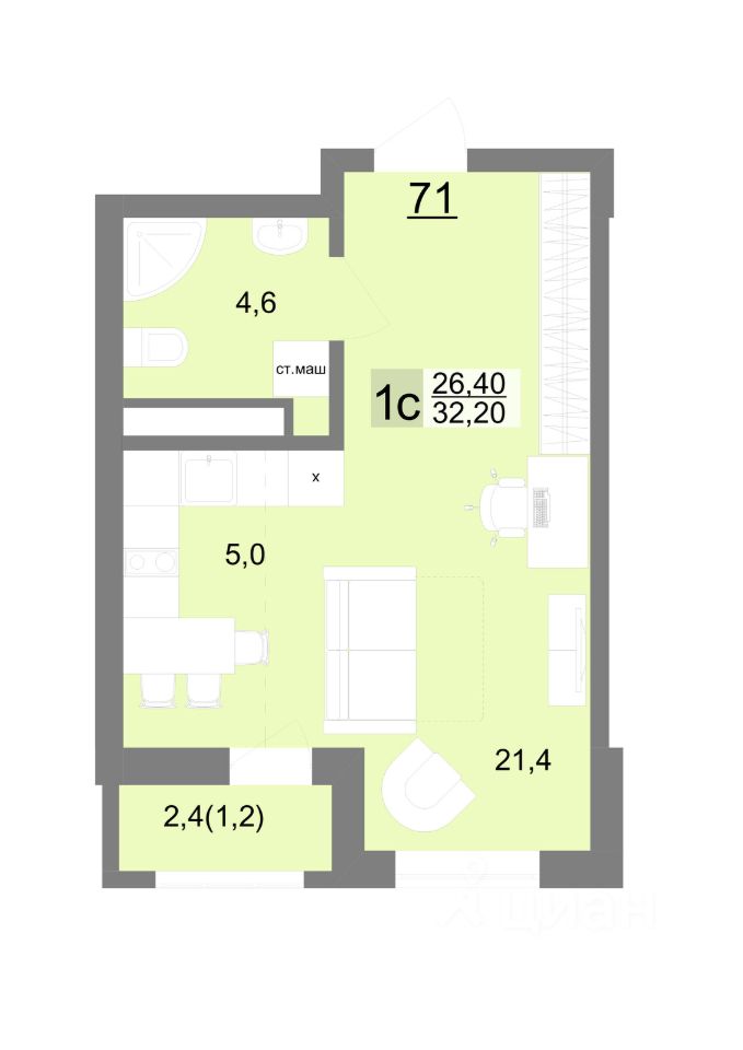 Общая площадь32,2 м2