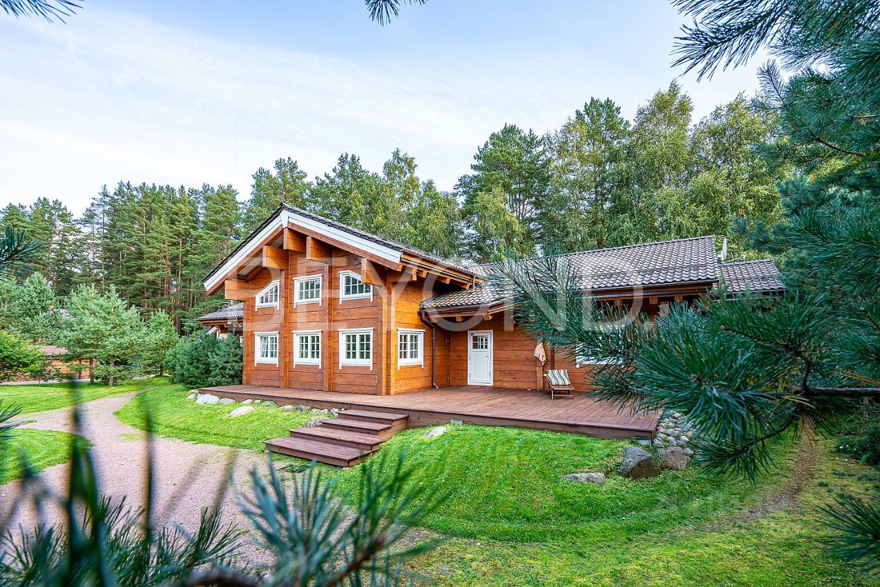 Предлагается к продаже жилой ансамбль для круглогодичного проживания. Роскошный двухэтажный дом построен из цельного бруса особо ценной породы Алтайского кедра (400мм / 220мм). Древесина особо ценной породы Алтайского кедра обладает уникальными специфическими свойствами, благотворно и лечебно воздействует на организм человека, являясь самым ценным материалом для домостроения. Не подвержен гниению и старению. Дом, его внутреннее пространство и интерьеры спроектированы и реализованы художником и скульптором с международным признанием. Высокие потолки. На первом этаже - просторная гостиная высотой 6 метров, с примыканием столовой и функциональной оборудованной кухни. Четыре спальни, два санузла, финская сауна, гардеробные. На втором этаже оборудован спортивный зал, детские комнаты. Домовладение расположено на первой линии реки Бурная, в устье Ладожского озера. Собственная пристань и глубина позволяют причалить судну ''река-море'', открывая выход в Ладогу и через Неву в Балтику. Благоустроенная территория с насаждениями и газонами, большим собственным прудом с рыбой и лилиями. Участок защищен буферной парковой зоной 10 Га. Автономность обеспечивается газовой котельной, дублирована дровяной котельной, собственная артезианская скважина с прекрасными питьевыми показателями, собственная ЛЭП и подстанция, круглосуточная охрана периметра, КПП. Дополнительно на территории расположен отдельный гостевой дом из бруса, просторная отапливаемая художественная мастерская, теплый гараж на два авто, отдельные открытые навесы на 3 авто.