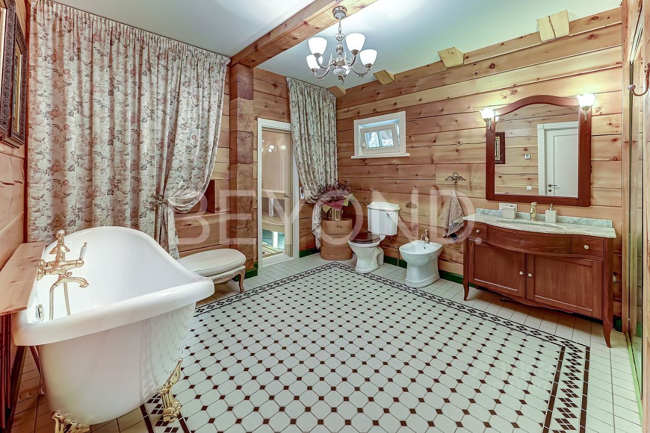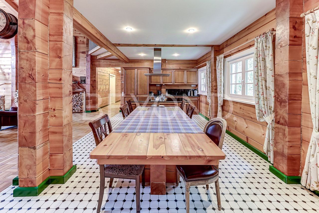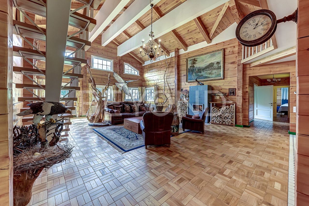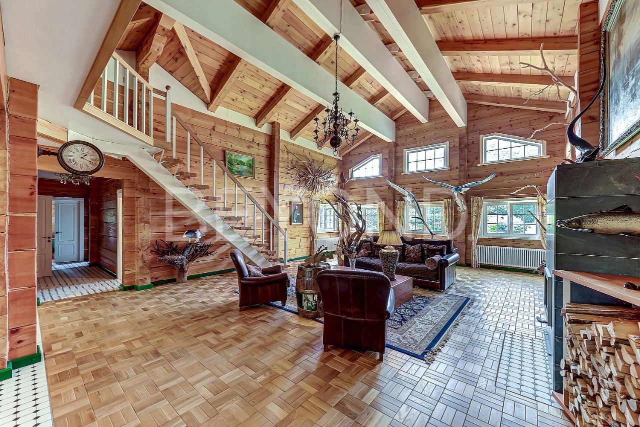 Предлагается к продаже жилой ансамбль для круглогодичного проживания. Роскошный двухэтажный дом построен из цельного бруса особо ценной породы Алтайского кедра (400мм / 220мм). Древесина особо ценной породы Алтайского кедра обладает уникальными специфическими свойствами, благотворно и лечебно воздействует на организм человека, являясь самым ценным материалом для домостроения. Не подвержен гниению и старению. Дом, его внутреннее пространство и интерьеры спроектированы и реализованы художником и скульптором с международным признанием. Высокие потолки. На первом этаже - просторная гостиная высотой 6 метров, с примыканием столовой и функциональной оборудованной кухни. Четыре спальни, два санузла, финская сауна, гардеробные. На втором этаже оборудован спортивный зал, детские комнаты.