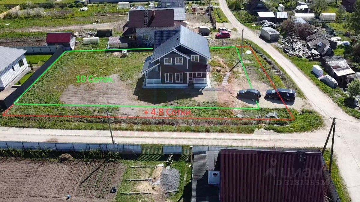 Учacток угловой, правильной формы, сухой, площадью 10 соток по документам,назначение земли ИЖС, но на самом деле 14-15 соток, которые можно узаконить, тем самым увеличить площадь.На фотографии выделена внешняя часть участка которую можно в дальнейшем выкупить по кадастровой стоимости у Администрации, либо пользоваться так, ее все равно ни кто не займет и не выкупит кроме собственника этого участка. Один собственник,ограничений и обременений нет! Готовы к выходу на сделку! В доме 5 спален. 1этаж-большая кухня - гостиная, су с просторной душевой, котельная, прихожая и гостевая комната-спальня. 2 эт - 4 спальни и су с ванной. Каркасный дом, сделанный из сухого леса, утепление стен и крыши 200,крыша металлочерепица,наружная отделка-имитация бруса, окрашено в заводских условиях, финской краской. 2 входные двери. Стеклопакет и железная дверь с мдф. Материалы отделки-в спальнях метровые обои Виктория Стенова итп, ламинат 33 класса. Кухня гостиная, холл, котельная и санузлы отделаны широкоформатным керамогранитом и декоративной штукатуркой. Окна двухкамерные стеклопакеты с 70 профилем. Натяжные потолки,высотой 3 метра. 1 этаж теплые полы, по всему этажу. 2 этаж радиаторы.