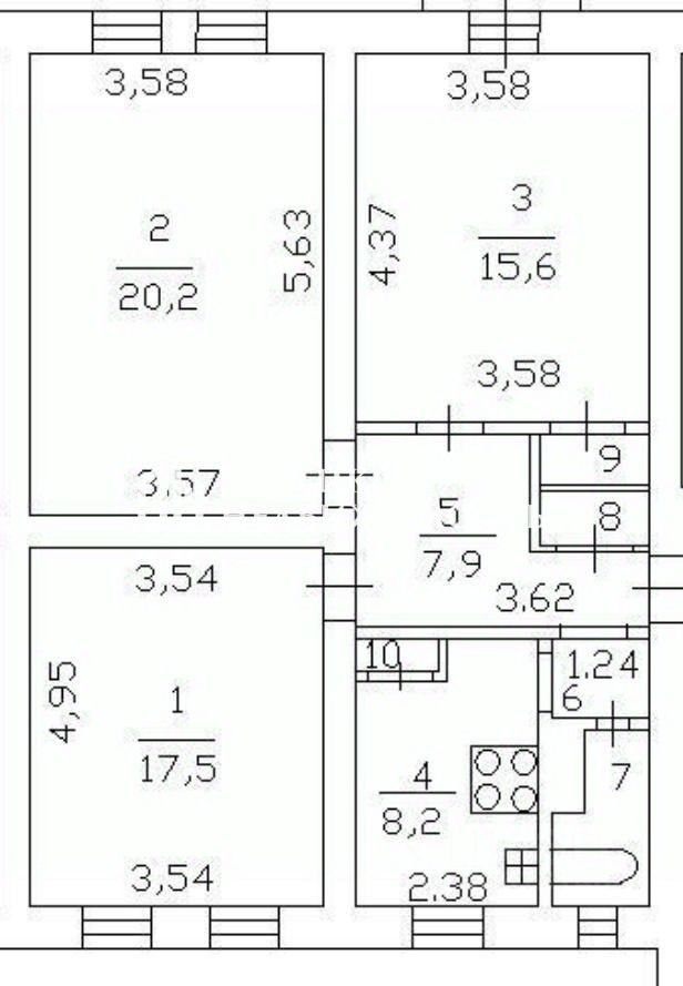 Общий метраж квартиры 75.5 м2. В квартире ВСЕГО 3 КОМНАТЫ.