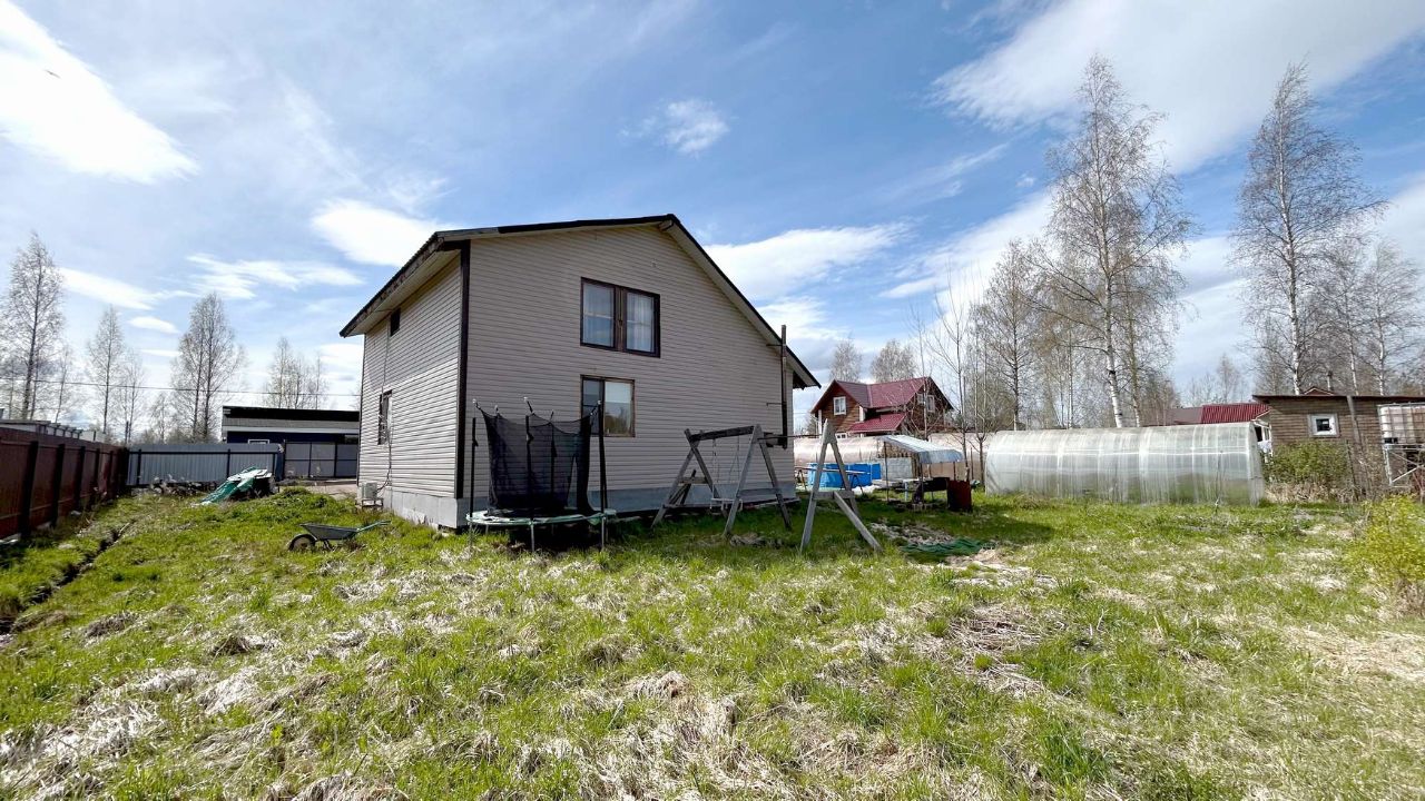 Межевание сделано. Газ есть в садоводстве (у соседей уже подключен). Электричество 15 кВт, скважина, септик. Документы к продаже готовы. Подходит для постоянного проживания. Как же удобно иметь дачу в развитом садоводстве, с качественными и широкими дорогами (такое встретишь нечасто, в основном дом на доме и участки по 6 соток). В садоводстве Тюльпан, большинство соседей проживают круглогодично. Продается теплый, двухэтажный дом площадью 152,3 кв.м. на огороженном со всех сторон участке 9,2 сотки. Хороший подъезд к участку. Откатные ворота, открываются с пульта. На парковке легко помещается 3-4 автомобиля. На заднем дворе место для батута, качелей, каркасного бассейна, барбекю зоны и парника для выращивания домашних овощей. Перед входом в дом уложена плитка. Напротив сделан сарай для хранения техники и инструмента, а также крытая беседка. Веранда в доме застеклена, в отдельном помещении находится котельная, дом отапливается как дровами, так и электричеством. При желании можно подключить газ, который проходит по границе участка. Соседи по участку уже подключили. На первом этаже, широкая прихожая, спальня 16,2 кв. с видом на зеленый двор, просторная кухня-гостиная 26,3 кв.м и санузел 8,4 кв.м с душевой кабиной, раковиной с тумбочкой, водонагревателем, туалетом и стиральной машиной. В доме есть всё необходимое для постоянного проживания, если рассматриваете этот вариант. На втором этаже три спальни (14,5 + 17,6 + 8,4 кв.м), гардеробная и санузел. Сделана чистовая отделка, есть небольшие недоделки, материалы для них в наличии. В пешей доступности амбулатория, детский сад, баня, магазин магнит, остановка общественного транспорта, пункт выдачи озон, спортивная площадка. Знаменитый Дворцово-Парковый Ансамбль в 10 минутах от дома. До Ж\Д станции Татьянино 3,4 км и 9 мин на авто. До КАД Спб всего 44 км, в районе 40 мин. на авто. Дом для ценителей комфорта, уюта и загородной жизни рядом с городом. Записывайтесь на просмотр.