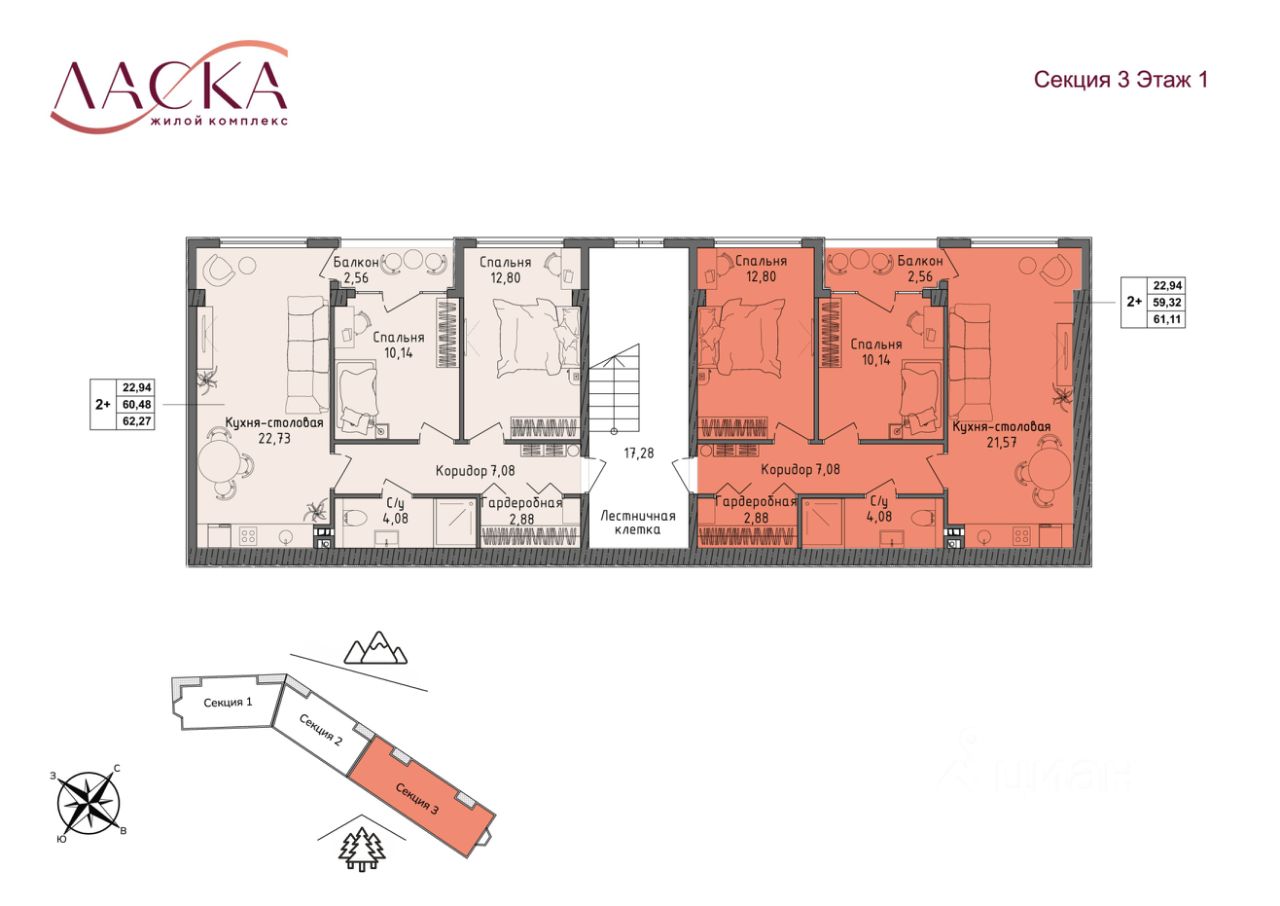 На каждом этаже всего 2 квартиры, что обеспечивает приватность.