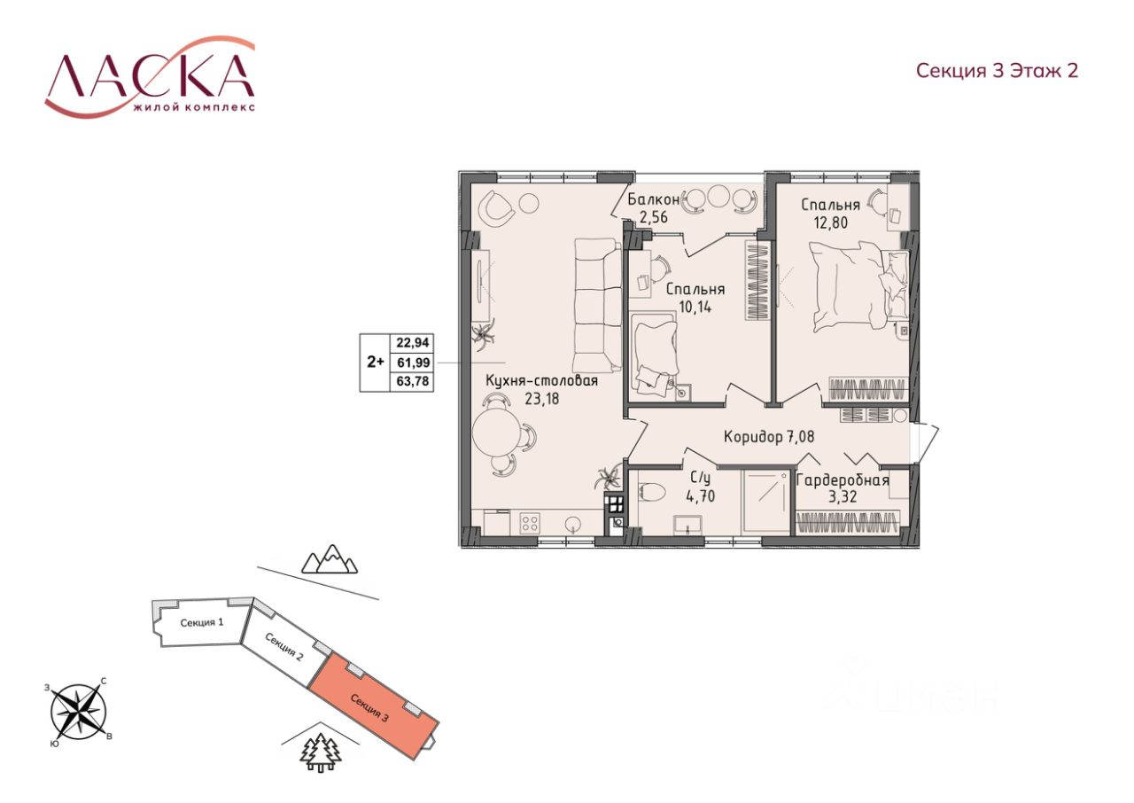 Общая площадь61,99 м2