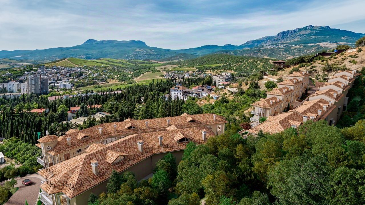Комплекс находится всего в 800 м от Судакского шоссе, которое обеспечивает возможность быстро добраться до трассы, ведущей в г. Симферополь и различным курортам Крыма. До всей необходимой инфраструктуры г. Алушты можно доехать всего за 5-6 минут, а до моря всего за 5 минут.