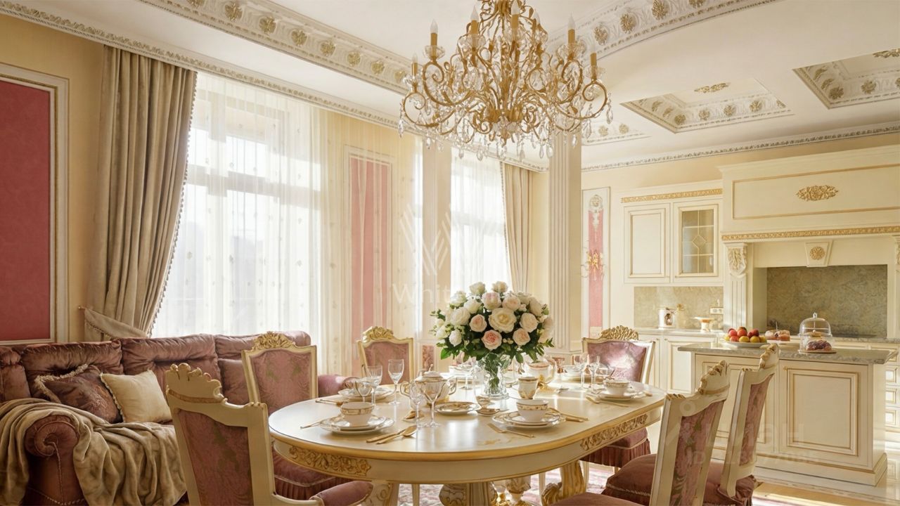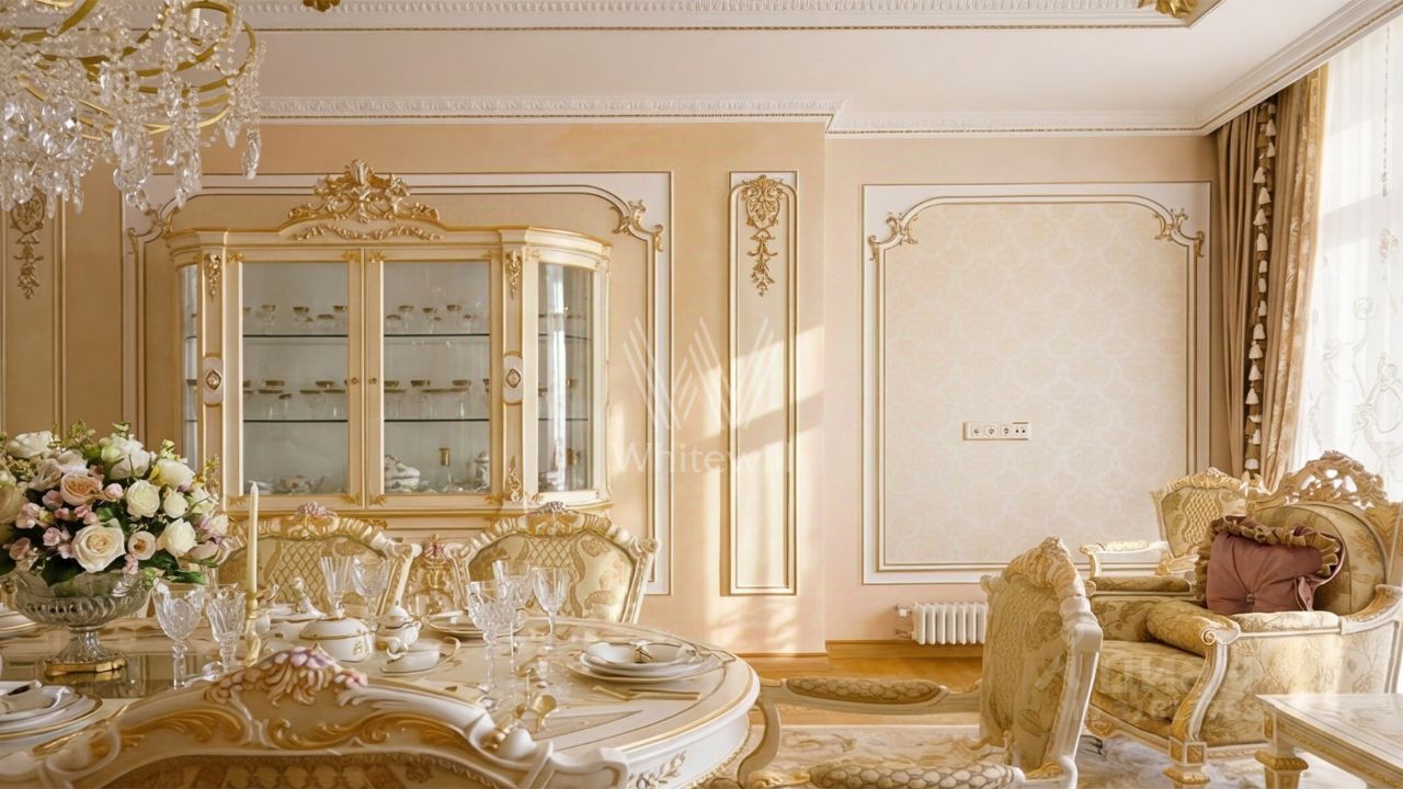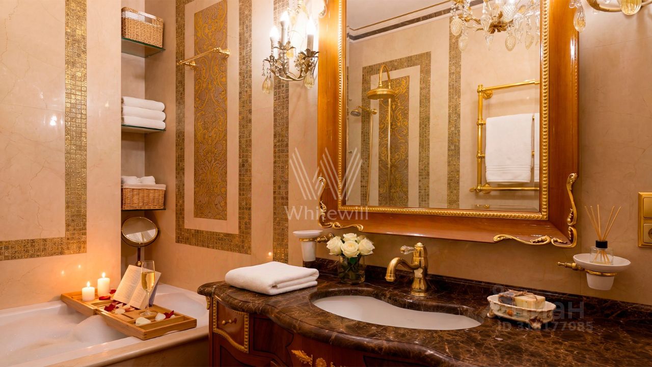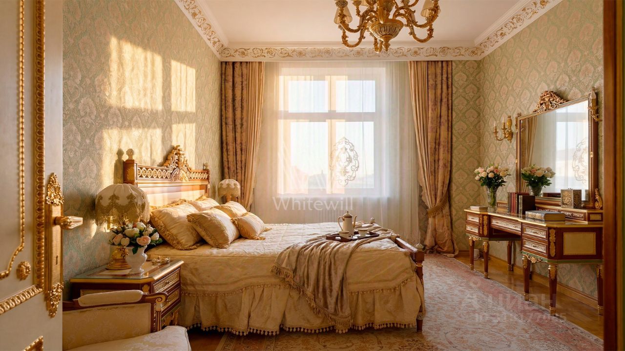 Просторная квартира в комплексе премиум-класса ''Онегин'' на шестом этаже. Премиальная дизайнерская отделка в стиле дворцовой классики, интерьер украшен изящной лепниной, колоннами. Высокие потолки с кессонами, панорамные окна, большое количество света.