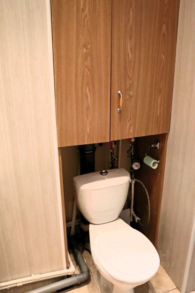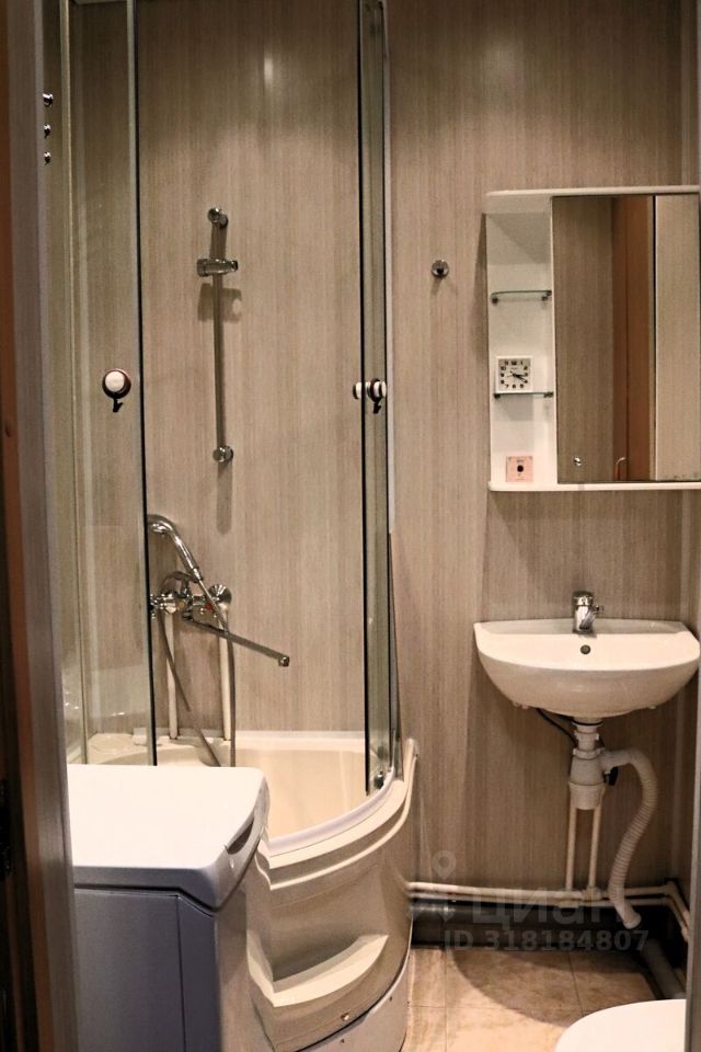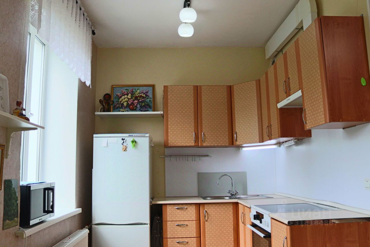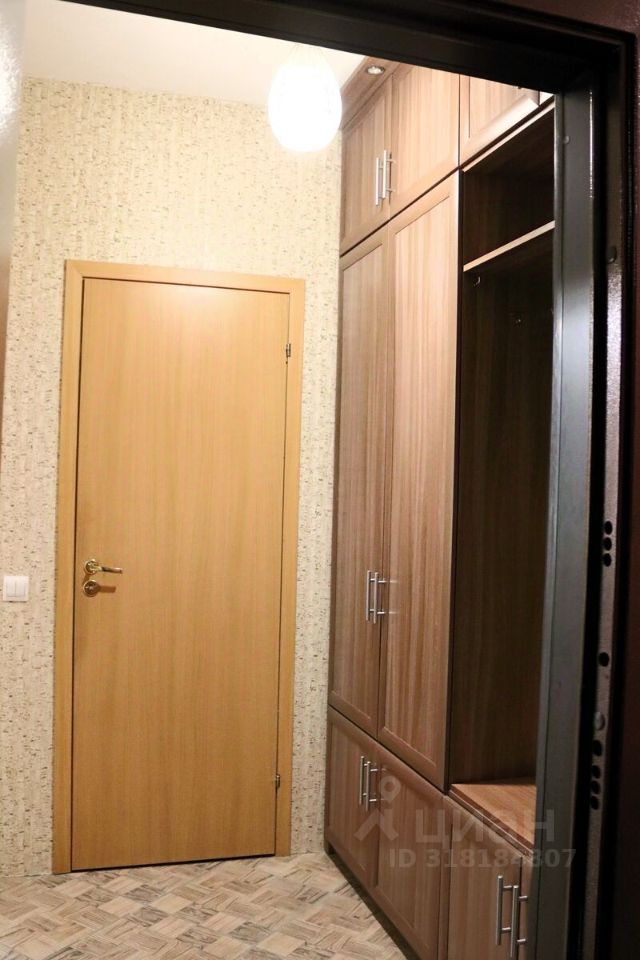 В квартире большая широкая комната 20,4 кв.м (3,4*6) с французским балконом, квадратная кухня площадью 5,2 кв.м, санузел совмещённый, в нём установлена стиральная машина, в вместительной прихожей большой шкаф.