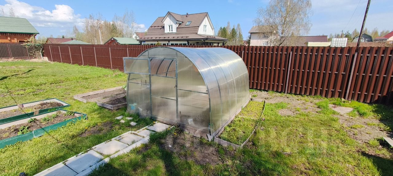 Участок разработан, есть плодовые деревья (яблони и слива), ягодные кусты (смородина. крыжовник), несколько грядок и парник из поликарбоната. Дополнительный источник воды - колодец. Бытовка для хранения хозяйственных мелочей. Мангальная зона для приготовления шашлыков. Забор выполнен из металлического штакетника.