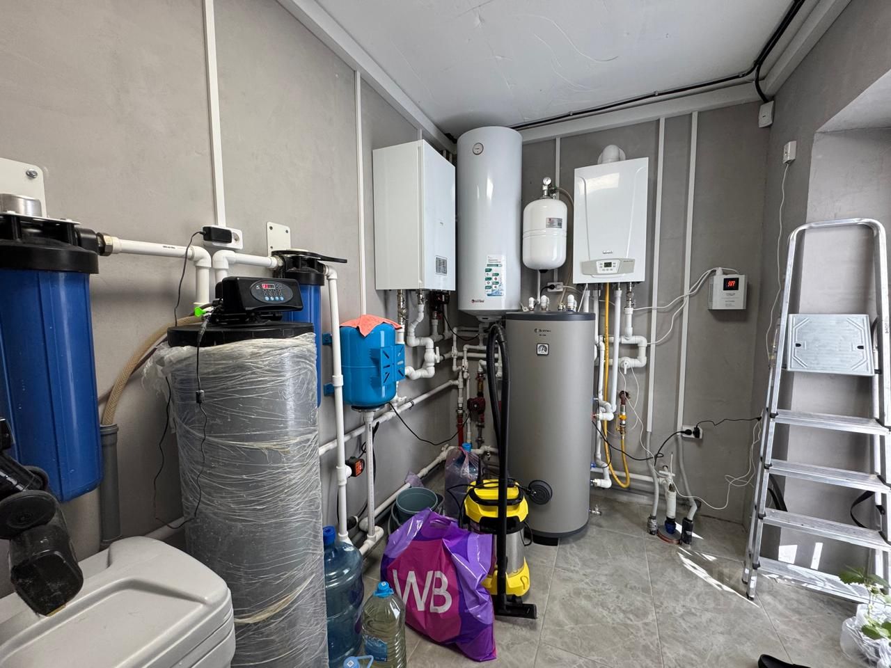 Продается жилой дом в черте города (мкр Новый Луцк), год постройки 2021. Дом очень комфортабельный, теплый, с удобной планировкой. Материал стен Росстро Велокс(несъемная опалубка, утеплитель- пенопласт, бетон(монолит) 30 см, несъемная опалубка), крыша- настоящая черепица, фундамент- плита. В дом заведен газ среднего давления, установлена система отопления и обогрева воды за счет газа(газовый котел и бойлер косвенного нагрева 200 литров), в качестве резервного обеспечения установлен электрический бойлер на 120 литров и электрический котел. Водоснабжение- скважина 25 метров, в доме установлена система очистки воды. Канализация- септик рассчитан на постоянное проживание 6-ти человек. Электроснабжение- 15 кВт. Отопление- первый этаж теплые водяные полы, второй этаж радиаторы.