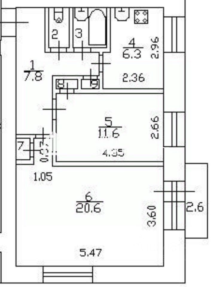 2 жилые изолированные комнаты: Одна из них 20.6 м2 с двумя окнами и выходом на балкон. Вторая 11.6 м2