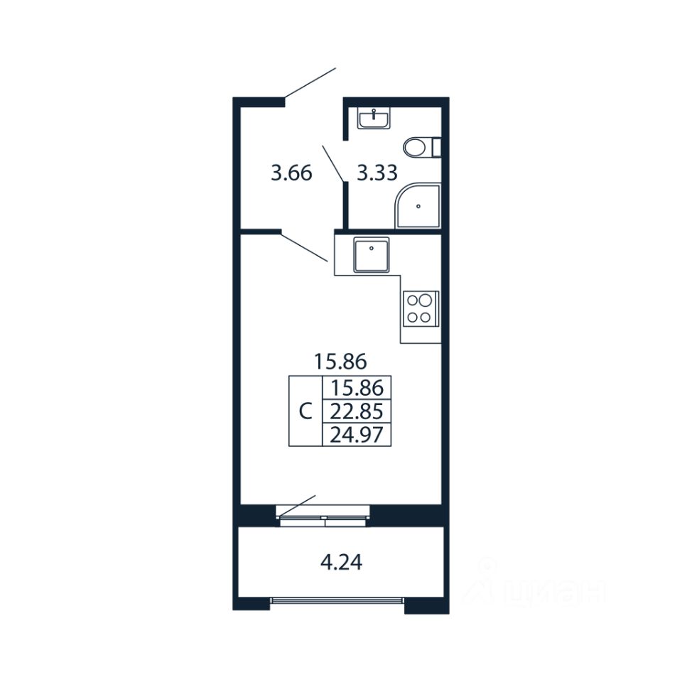 Общая площадь24,97 м2