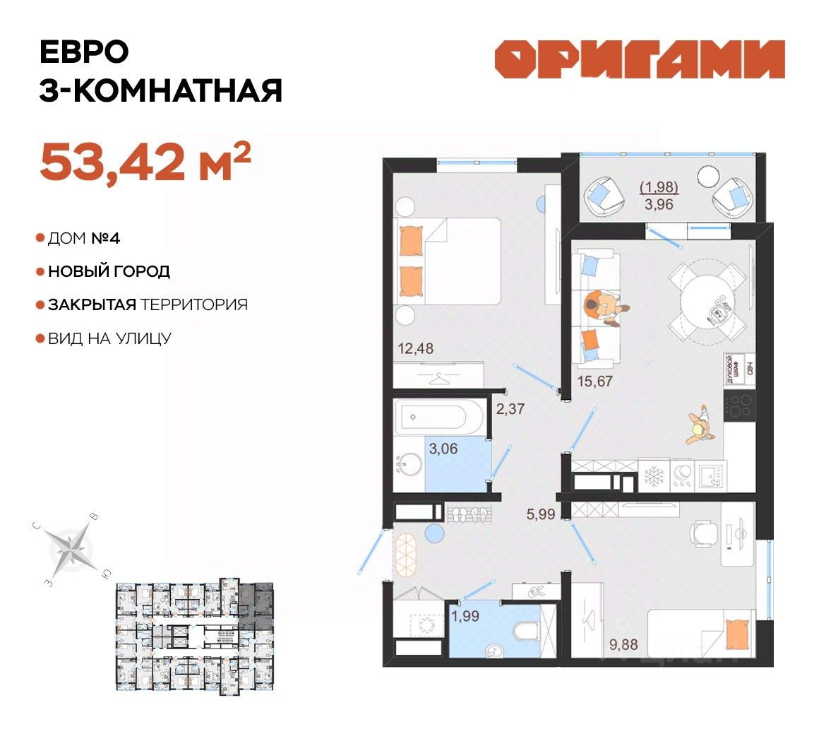 Пространство с готовой инфраструктурой продуктовый магазин у дома 12 образовательных и творческих школ медицинский кластер 7 торговых центров 5 детских садов парк ''Прибрежный'' Квартира находится на 12 этаже в 1 подъезде
