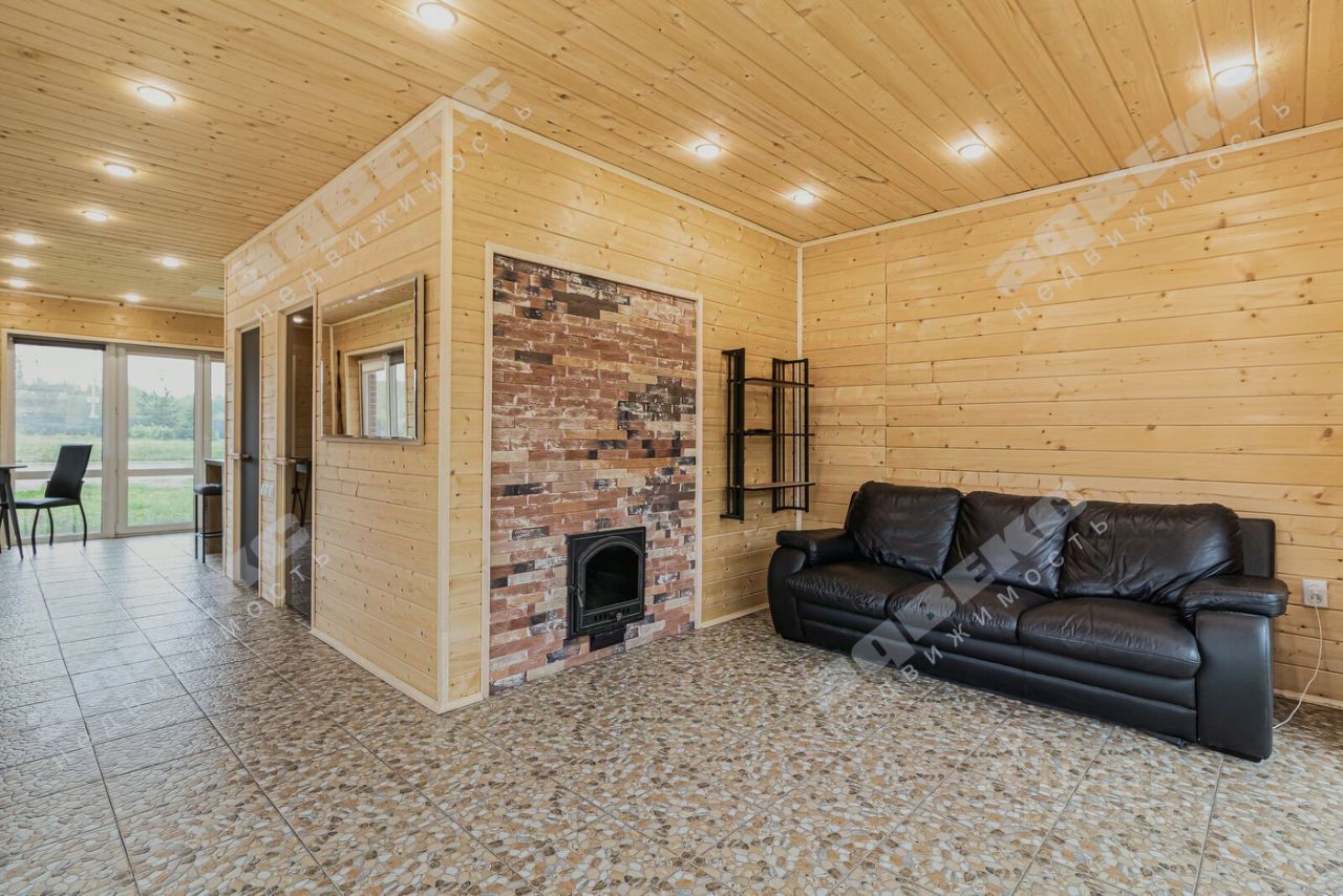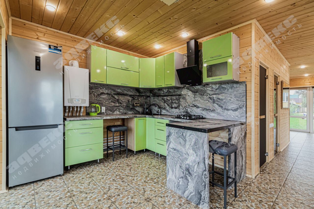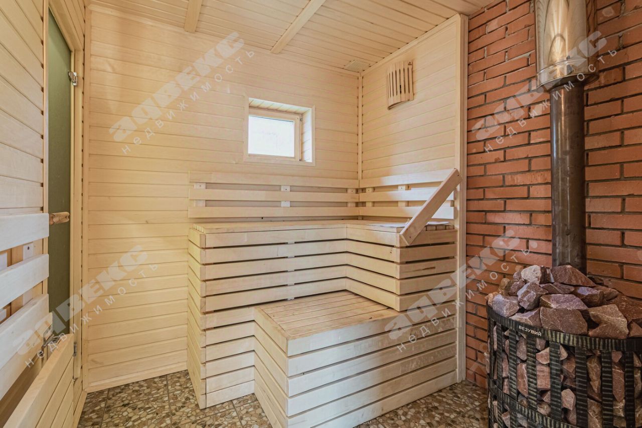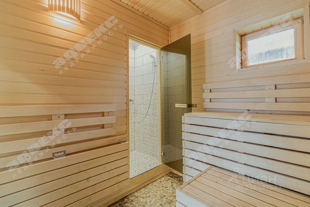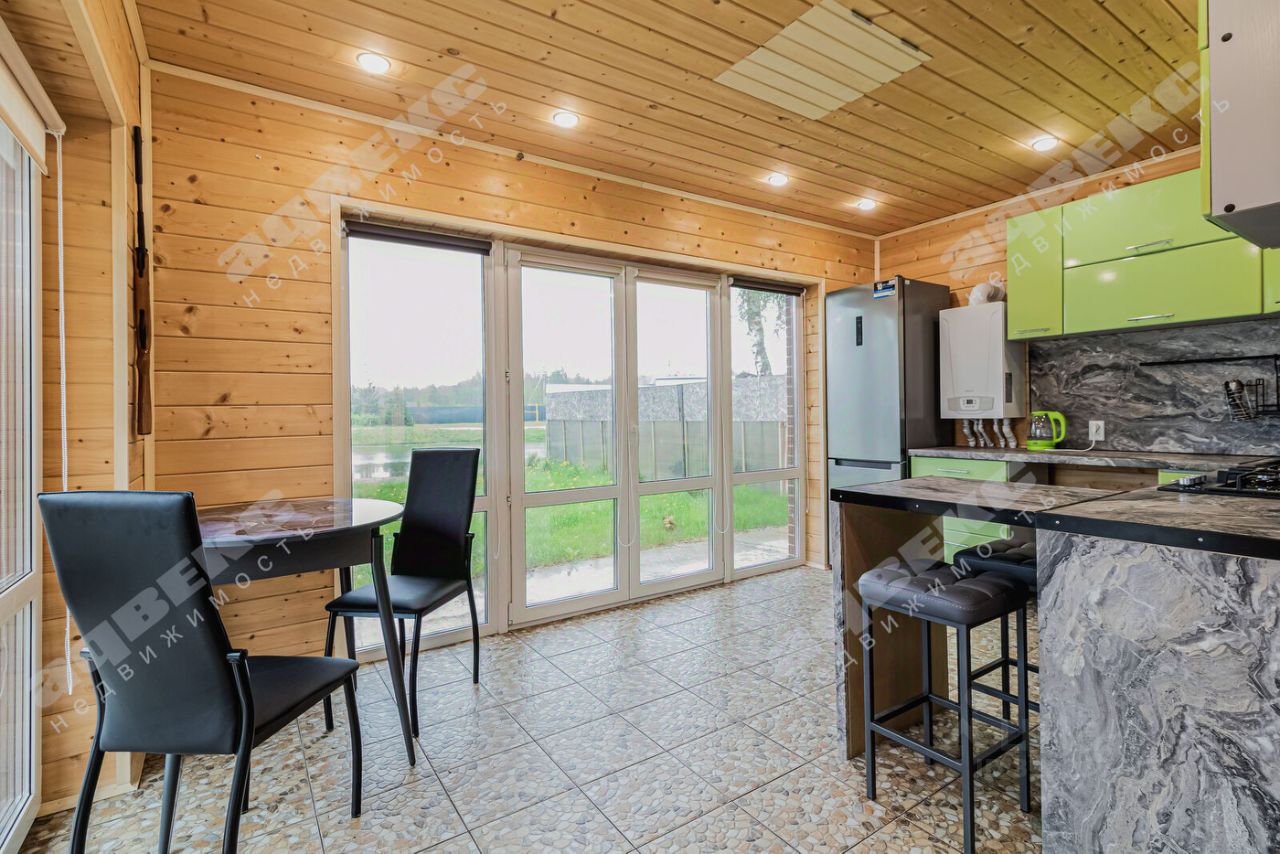 Баня: Баня вполне как третий гостевой домик - включает в себя кухню, парную, душевую, с/у и комнату для отдыха. Очень атмосферная - по всему периметру панорамные окна с видом на пруд и газон. Из каркаса, утеплена, все коммуникации так же заведены. Свой газовый двухконтурный котел для обогрева теплого водяного пола и горячей воды, печь со стеклянной топкой.