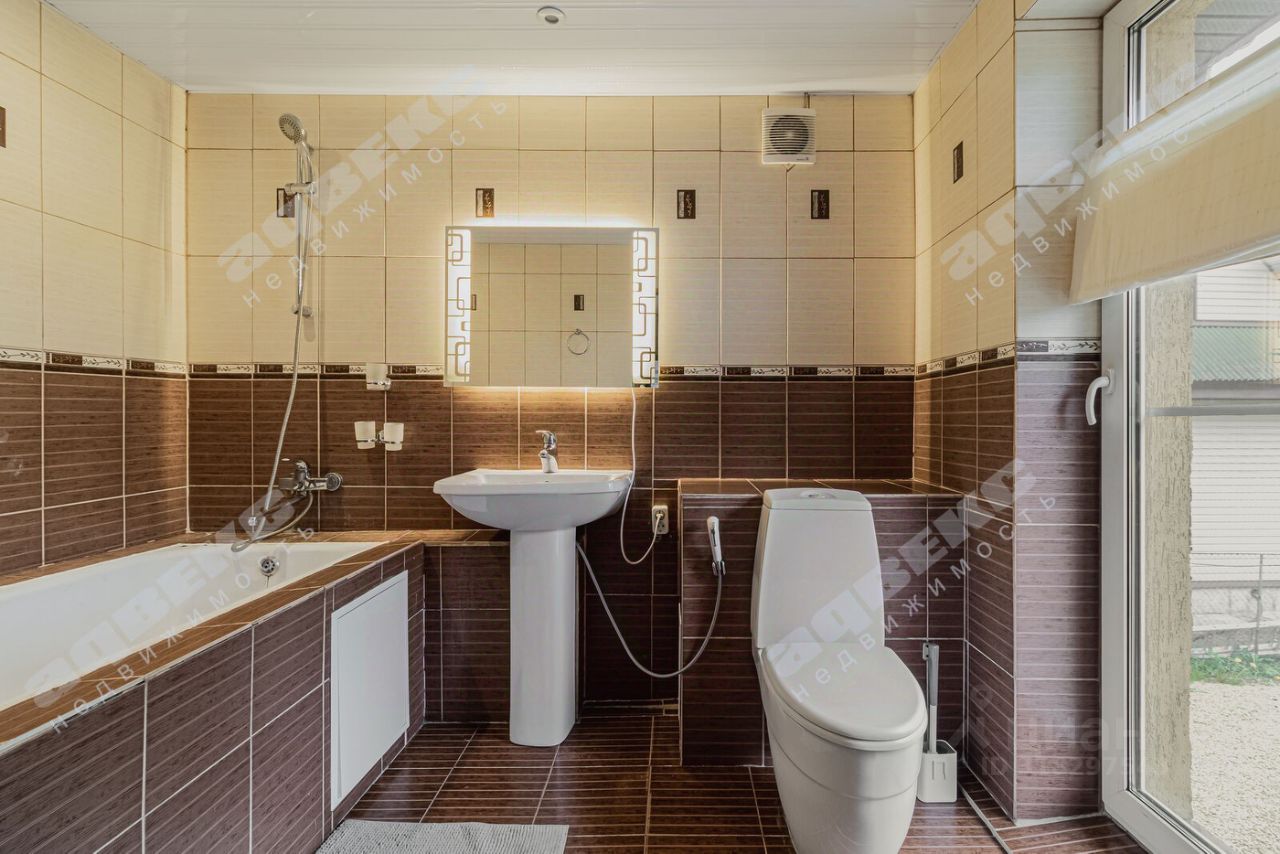 Первый дом 344 м.кв: Два жилых этажа + просторный теплый цокольный этаж с потолками 2,10 по периметру всего дома(отапливаемый, сухой, с окнами и вентиляцией, с/узлом, душем и раковиной, теплые полы). В цокольном этаже все техн.оснащение дома, постирочная, кладовая, морозильная камера, мастерская + большое помещение под спортивный зал или игровую комнату. На первом этаже большая кухня, огромная гостиная с панорамными окнами, три спальни и с/у. На втором этаже две большие спальни и с/у. Дом из бруса, крыша — металлочерепица. Отопление от газового котла, установлен бойлер косвенного нагрева, все коммуникации в доме скрытые. Потолок 2,70.