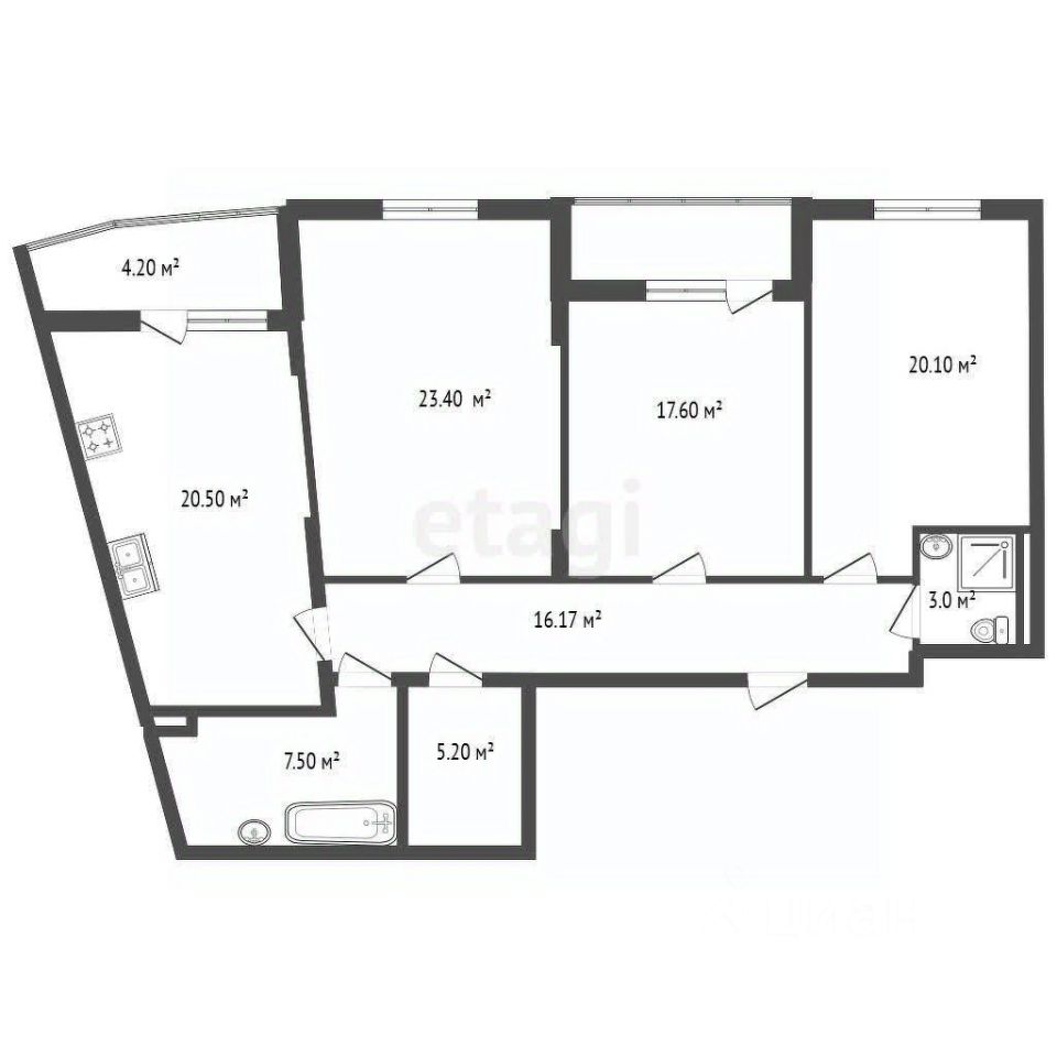 Планировка идеальна для семьи: Просторная кухня-гостиная (20,5 м²) станет центром вашего дома, а три уютные спальни (23,4 м², 17,6 м², 20,1 м²) обеспечат комфорт и уединение. Дополнительные удобства: две лоджии (по 4,4 м² и 4,2 м²), гардеробная (5,2 м²) и две ванные комнаты (3 м² и 7,5 м²), что делает жизнь максимально комфортной.
