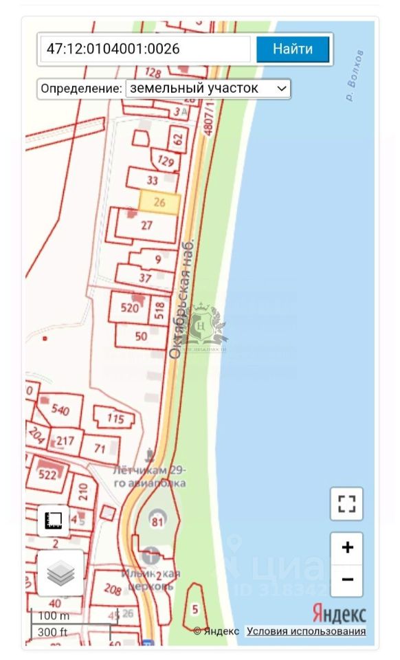 Арт. 95305626 Через дорогу берег реки Волхов. С двух сторон малоэтажные застройки. Въезд с асфальтом дороги. С одной стороны поле,нет застроек.