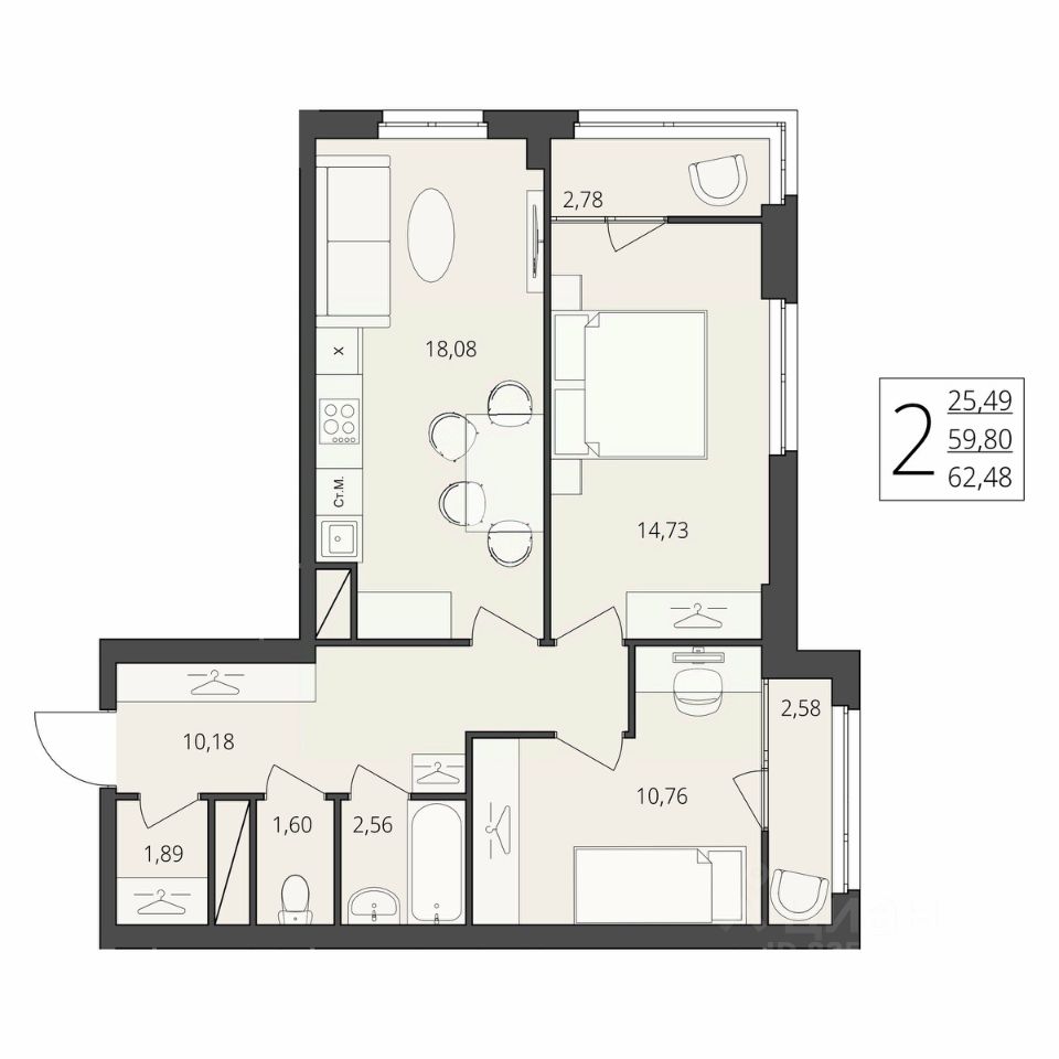Общая площадь62,48 м2