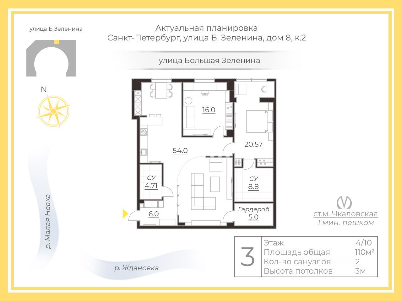 продам 3-к, Большая Зеленина, 8 корп. 259 400 000 ₽