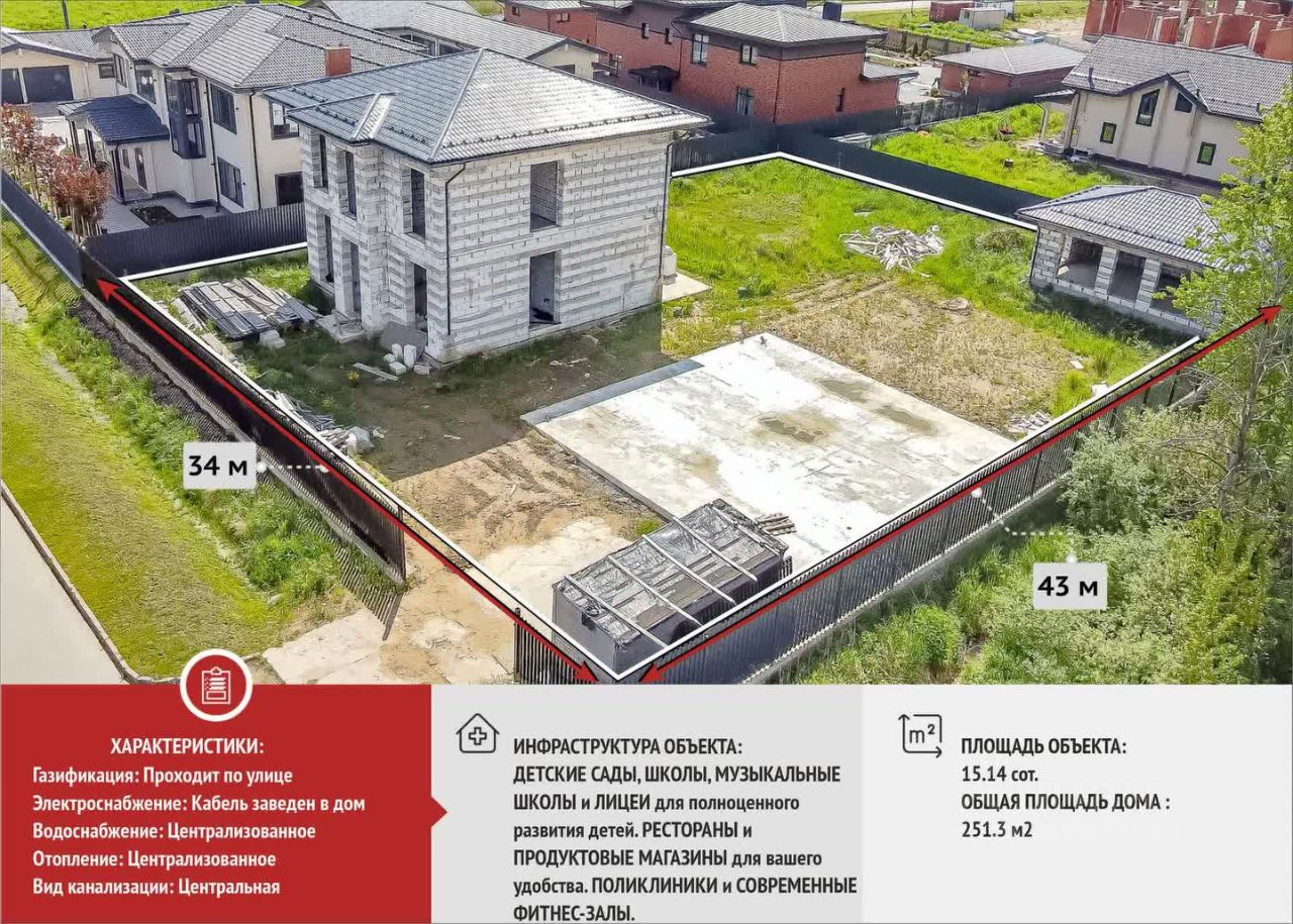 ОБЩАЯ ПЛОЩАДЬ: 251.3 КВ.М. СОВРЕМЕННОЕ СТРОИТЕЛЬСТВО: Дом возведен в 2023 ГОДУ из ГАЗОБЕТОНА, известного своими ОТЛИЧНЫМИ ТЕПЛО- И ЗВУКОИЗОЛЯЦИОННЫМИ СВОЙСТВАМИ. НАДЕЖНЫЙ ФУНДАМЕНТ: Монолитная ЖЕЛЕЗОБЕТОННАЯ ПЛИТА с ДВОЙНЫМ АРМИРОВАНИЕМ и локальными усилениями арматурой — основа ДОЛГОВЕЧНОСТИ и УСТОЙЧИВОСТИ. ПРОЧНЫЕ ПЕРЕКРЫТИЯ: Межэтажное перекрытие выполнено из МОНОЛИТА, что обеспечивает дополнительную НАДЕЖНОСТЬ и ЖЕСТКОСТЬ КОНСТРУКЦИИ. КАЧЕСТВЕННАЯ КРОВЛЯ: Чердачное перекрытие из СУХОЙ СТРОГАННОЙ ДОСКИ с МОЩНЫМ УТЕПЛЕНИЕМ. Стропильная часть из ДОСКИ КАМЕРНОЙ СУШКИ. Покрытие ПРОЧНАЯ МЕТАЛЛОЧЕРЕПИЦА 0,5 ММ, а водосточные системы МЕТАЛЛИЧЕСКИЕ, гарантирующие долговечность. СТИЛЬНЫЙ ФАСАД: Возможность выбора внешнего оформления дома между КЕРАМОГРАНИТОМ и КЛИНКЕРНЫМ КИРПИЧОМ, позволяя адаптировать его под ваш УНИКАЛЬНЫЙ ВКУС.