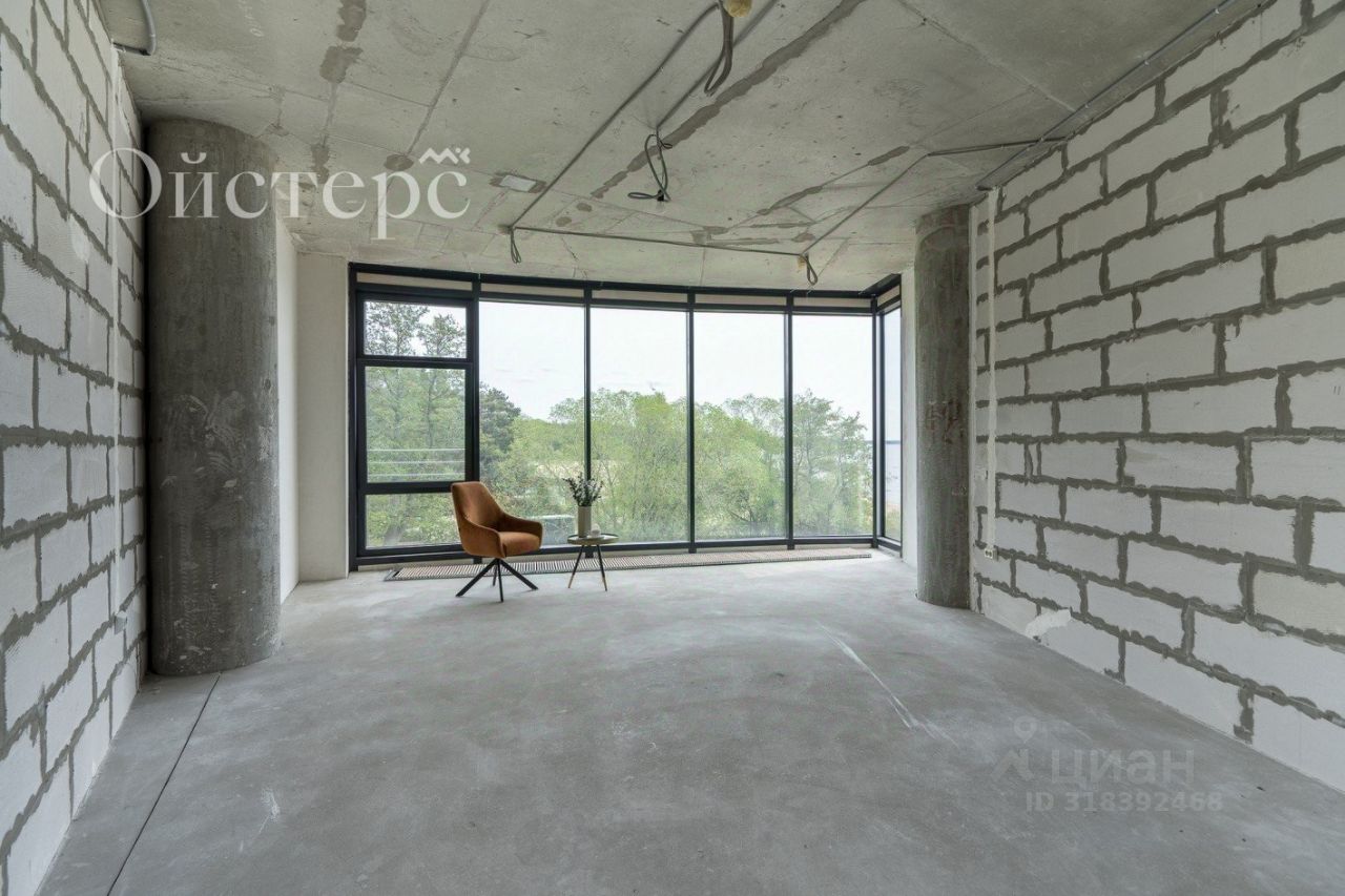 Из панорамных окон открывается шикарный вид на залив. Ремонта в квартире не было — это чистый холст, на котором можно реализовать все свои самые смелые дизайнерские идеи. Жилой комплекс выполнен в бионическом стиле: лёгкость форм, плавные переходы, натуральные оттенки и отсутствие острых углов. Здание состоит из трёх частей, соединённых общим вестибюлем на первом этаже и галереями на этажах выше, а в центре каждой части находится атриум со стеклянными фонарями. Технология строительства — кирпич-монолит, в доме идеально чистая парадная, установлена качественная шумоизоляция, работает диспетчер.