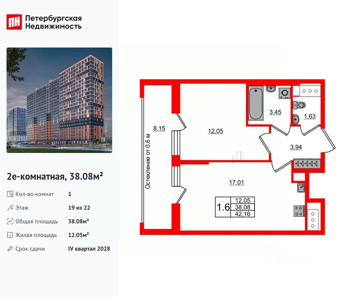 Общая площадь38,08 м2