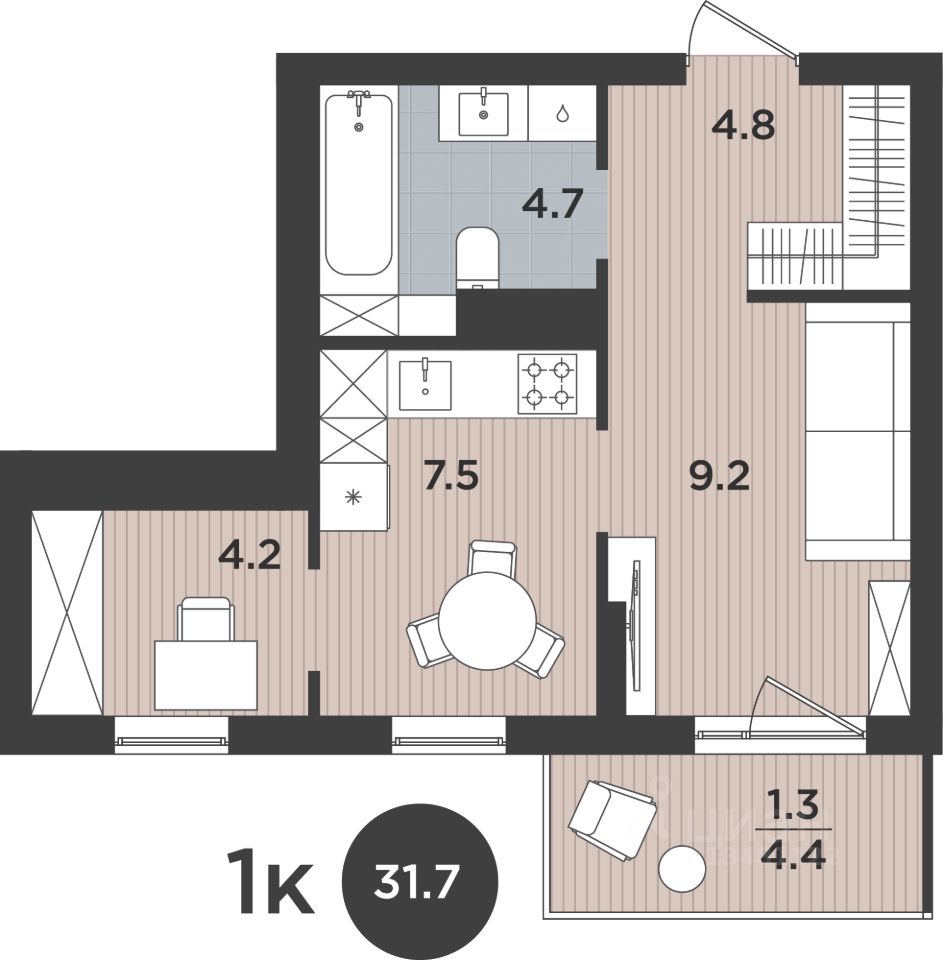 Квартира 172. Жилой комплекс Левада это место, где комфорт встречает функциональность, а стиль несет в себе простоту и уют.