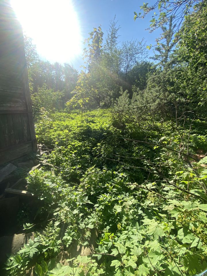 Прекрасное место, близость к городу. На участке есть старый деревянный дом с постройками. Есть электричество, водопровод, газ по границе, колодец. В доме давно никто не жил. Вероятно под снос. Дом зарегистрирован.