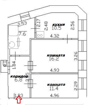 Большая комната 16,2 кв. м с 2-мя окнами и маленькая комната 11.4 кв.м