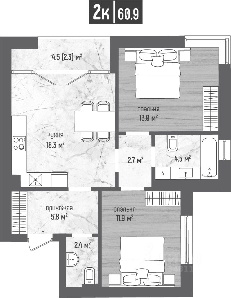 продам 2-к, Морена ЖК, 19.111 875 500 ₽