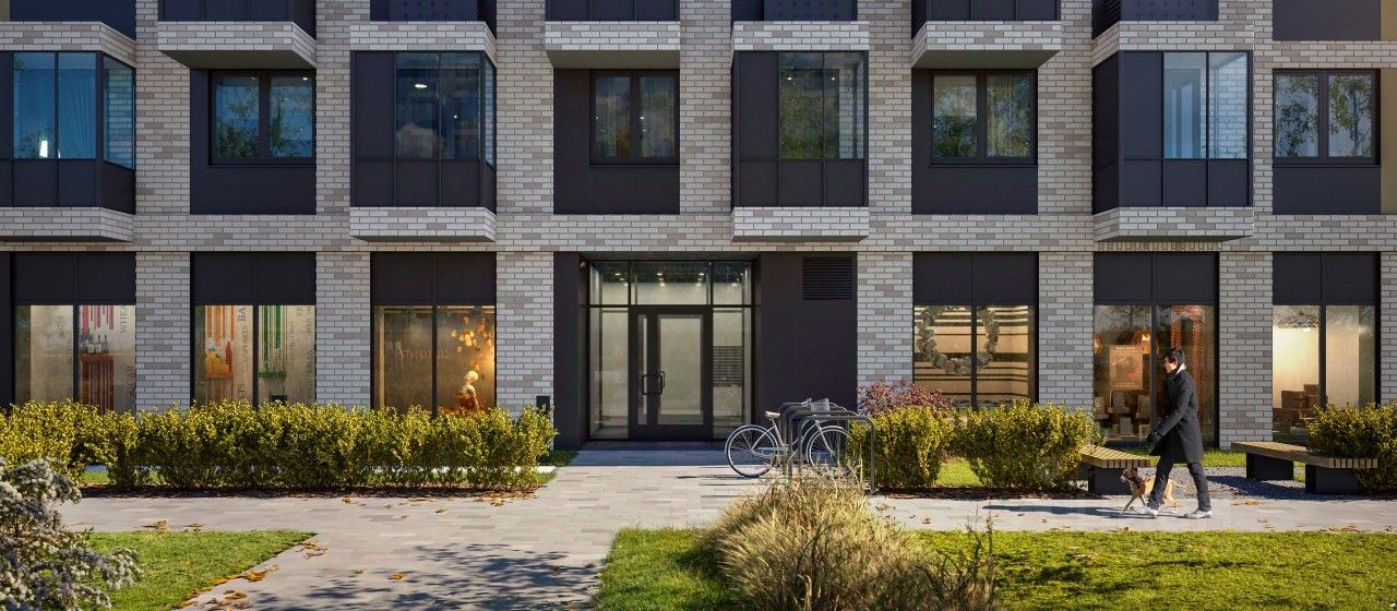 Входы в подъезды ''Северного парка'' мы сделаем на уровне земли для комфортного перемещения по территории квартала любым способом: пешком, на самокате или с коляской. Благодаря панорамному остеклению, которое пропускает много естественного света, первые этажи будут просторные и светлые.